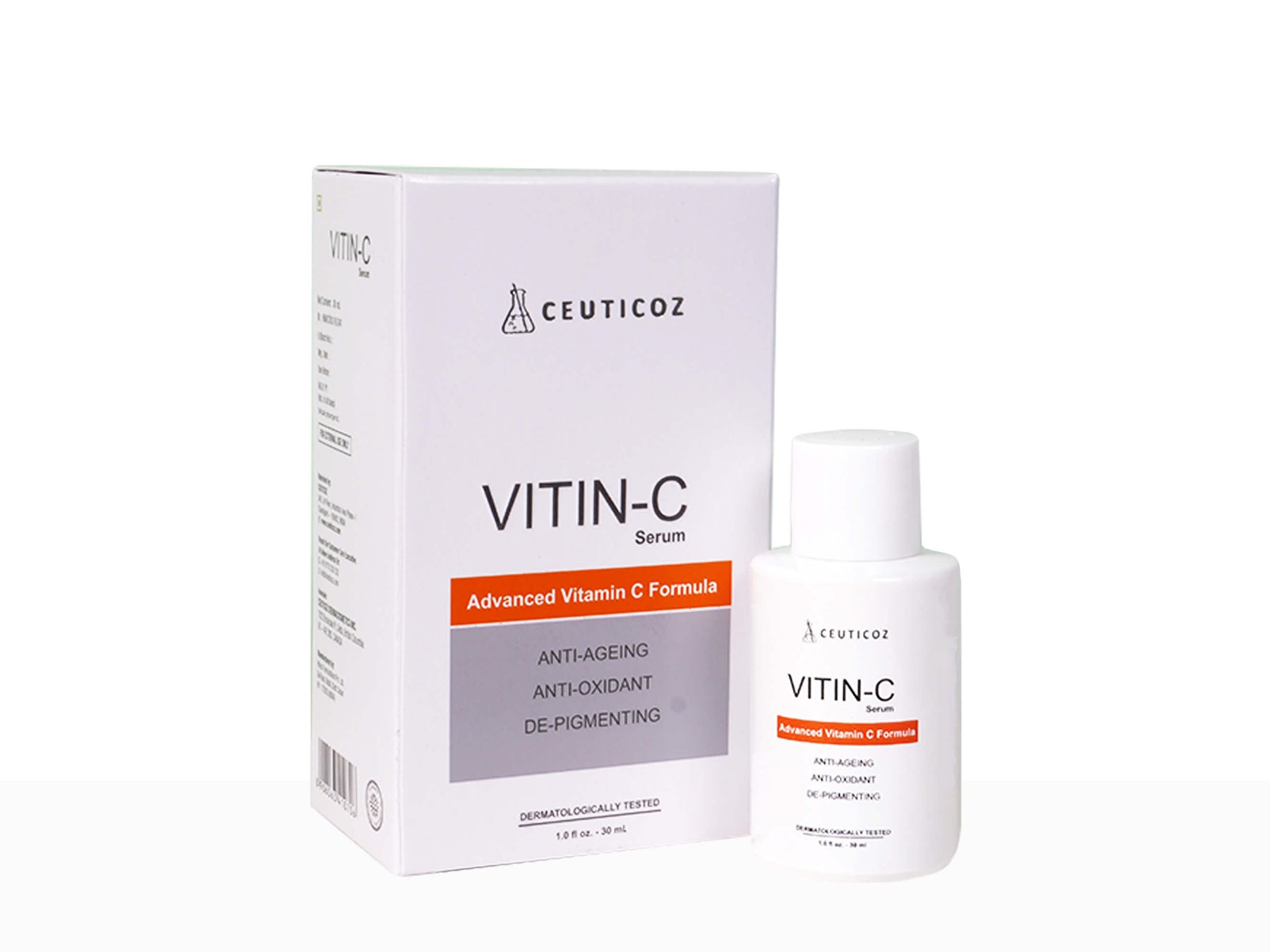 Ceuticoz Vitin-C Serum is a potent Vitamin C serum formulated with Ethyl Ascorbic Acid, offering anti-aging, antioxidant, and de-pigmentation benefits for brighter and smoother skin.