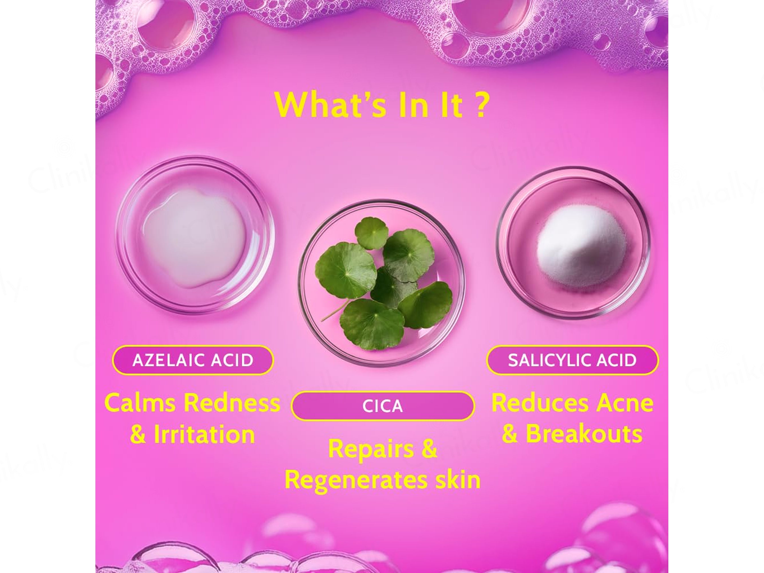 Chemist At Play 2% Salicylic Acid Oil & Acne Control Face Wash is a clarifying formula designed to deeply cleanse pores, regulate excess sebum, and minimize acne formation with its potent blend of 2% Salicylic Acid and skin-soothing Azelaic Acid, further supported by Cica (Centella Asiatica Extract) to calm inflammation and promote barrier repair; enriched with botanical and functional actives such as Avena Sativa (Oatmeal) Meal Extract, Oryza Sativa (Rice) Extract, Rice Phytoceramides, Konjac Phytoceramides, Panthenol, Allantoin, Sodium Hyaluronate, Polyglutamic Acid, Phospholipids, and Shinholipids, this face wash helps clear breakouts while maintaining hydration, reinforcing skin resilience, and improving overall texture for smoother, balanced, and acne-free skin.