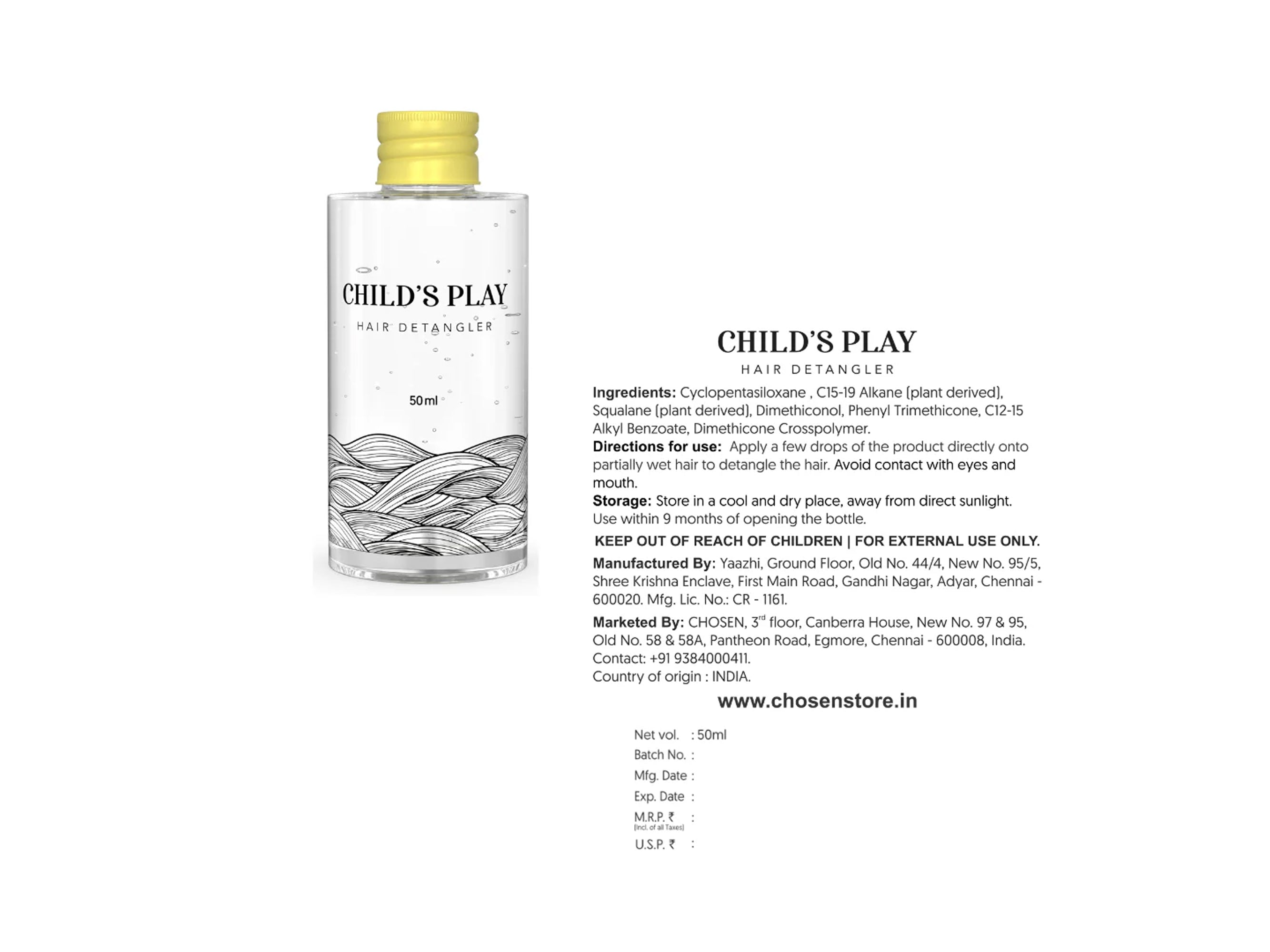 Chosen Child's Play Hair Detangler Serum is a gentle serum to detangle children's hair.