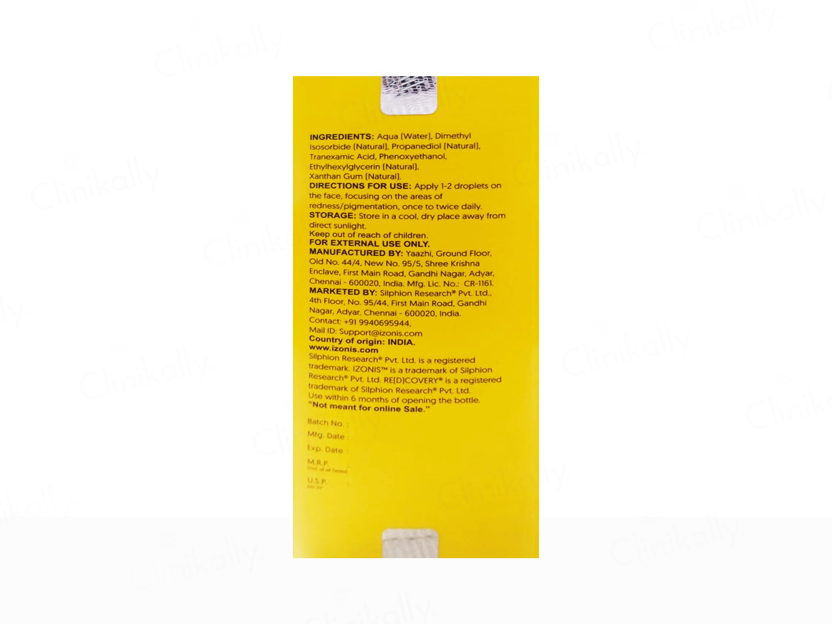 Key ingredients include Tranexamic Acid, Dimethyl Isosorbide, Propanediol, Ethylhexylglycerin, and Xanthan Gum.