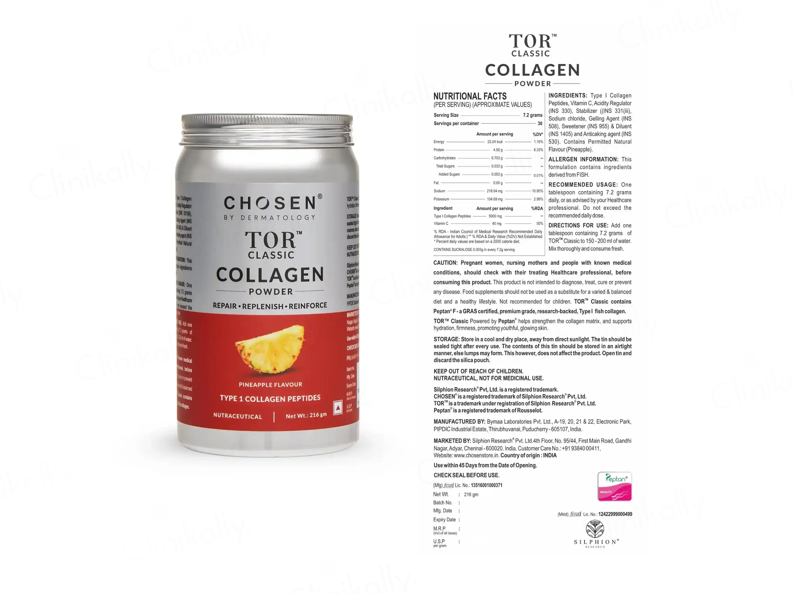Chosen TOR Classic Regular Marine Collagen Supplement Powder - Pineapple Flavour