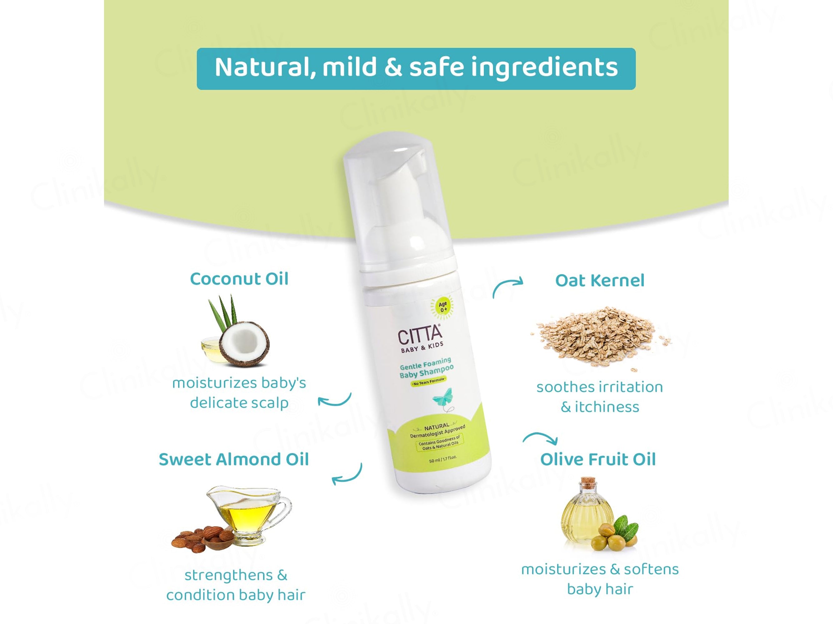 CITTA Baby & Kids Gentle Foaming Baby Shampoo is a meticulously crafted, tear-free formula designed to provide a safe and soothing hair-cleansing experience for infants from birth (Age 0+). Dermatologist-approved and natural-origin based, this shampoo harnesses the goodness of oats and a blend of nourishing natural oils to cleanse without stripping the scalp's delicate moisture. The innovative foaming pump delivers a pre-lathered, airy texture that minimizes friction on the baby's soft scalp, while key ingredients like Hydrolyzed Keratin, Panthenol, and Wheat Germ Oil work together to strengthen fine hair and improve manageability. Enriched with Almond, Coconut, and Olive oils, it deeply conditions the hair, leaving it silky and soft. The pH-balanced composition, featuring gentle surfactants like Coco Glucoside and Betaine, ensures that the skin’s natural barrier is respected, making it an ideal choice for daily hygiene. Free from harsh chemicals and enriched with antioxidant Vitamin E, this shampoo provides comprehensive care for your little one’s crowning glory, ensuring a bath time that is as nurturing as it is effective.