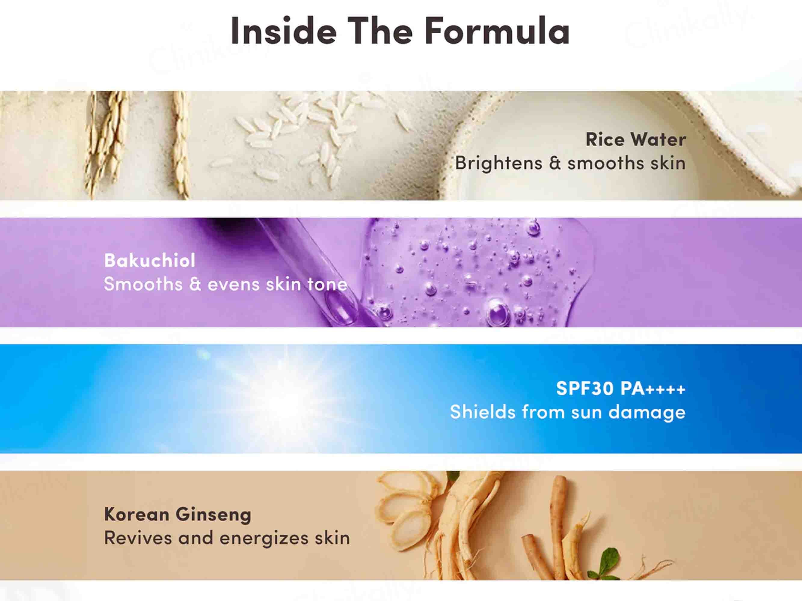 Claymi Sunglow Broad Spectrum Sunscreen SPF 30+ PA+++ is a lightweight sunscreen that protects and nourishes skin with Bakuchiol and Rice Water Extract.