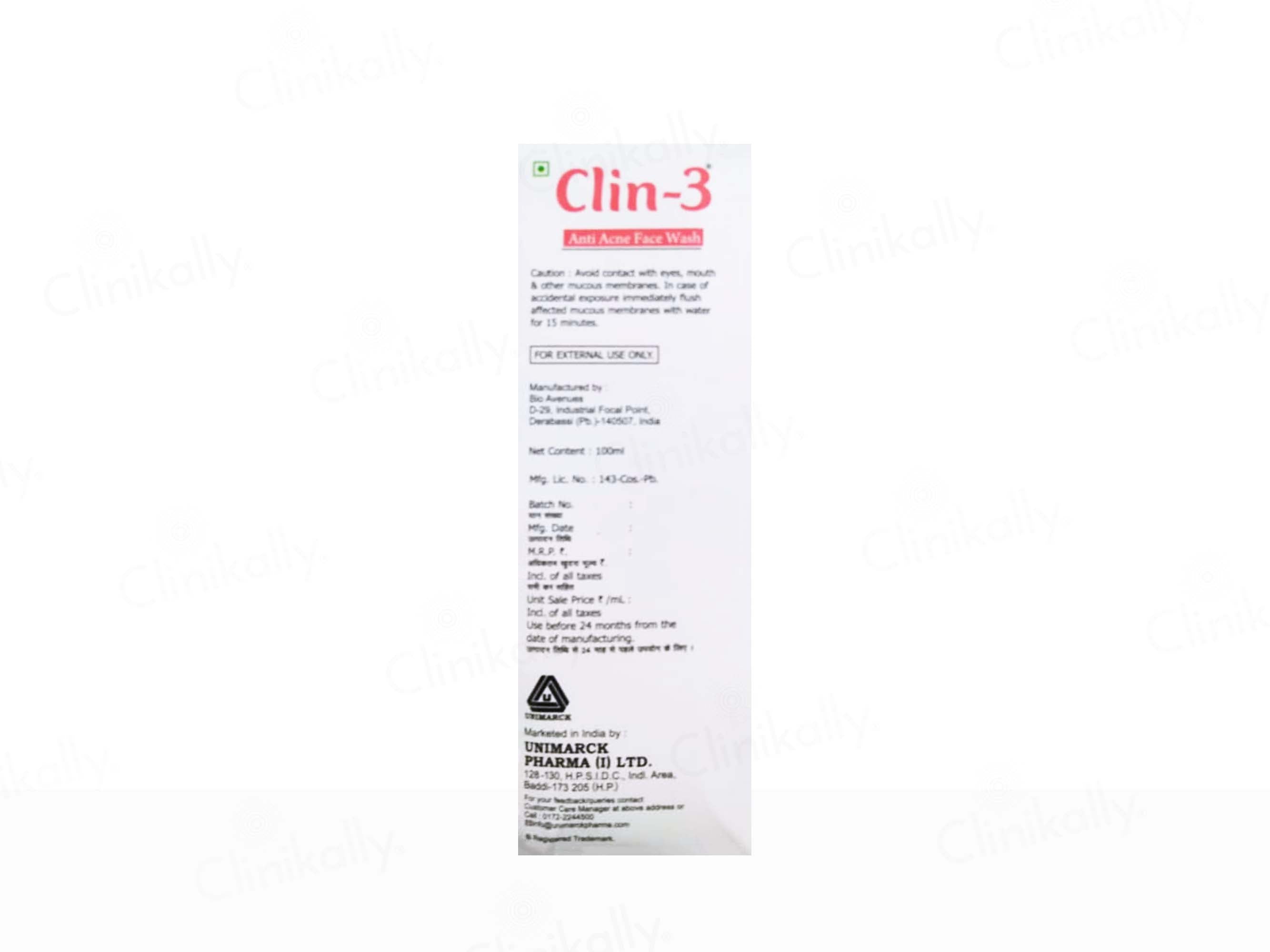 Clin-3 Anti-Acne Face Wash is a cleanser designed to treat and prevent acne while removing excess oil, dirt, and impurities.