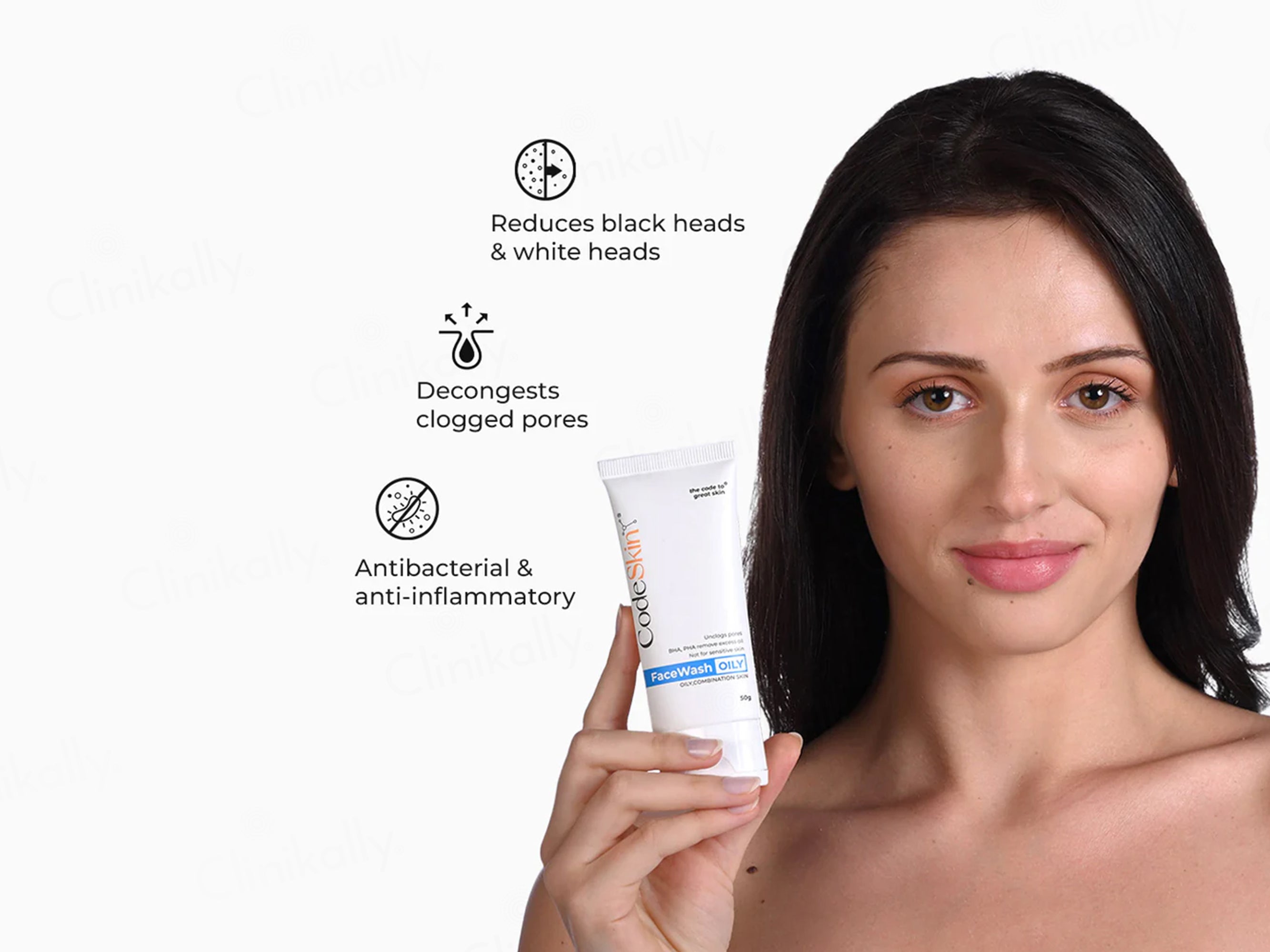 CodeSkin Oily Face Wash is a cleanser for oily and combination skin to unclog pores and control oil.