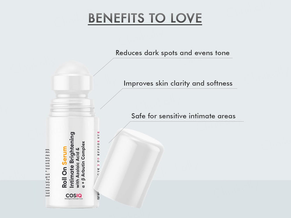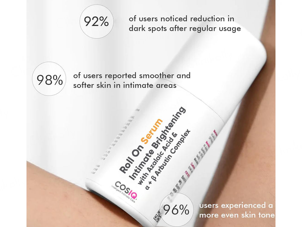 CosiQ Intimate Brightening Roll-On Serum is a specialized formula designed to gently brighten and even out skin tone in intimate areas. This roll-on serum combines brightening agents and hydrating ingredients to reduce pigmentation, soothe irritation, and improve skin texture. Its lightweight, non-greasy texture absorbs quickly, providing long-lasting moisture and a smoother appearance. Ideal for daily use, it promotes a more radiant and uniform complexion while being gentle on sensitive skin, making it perfect for intimate care routines.