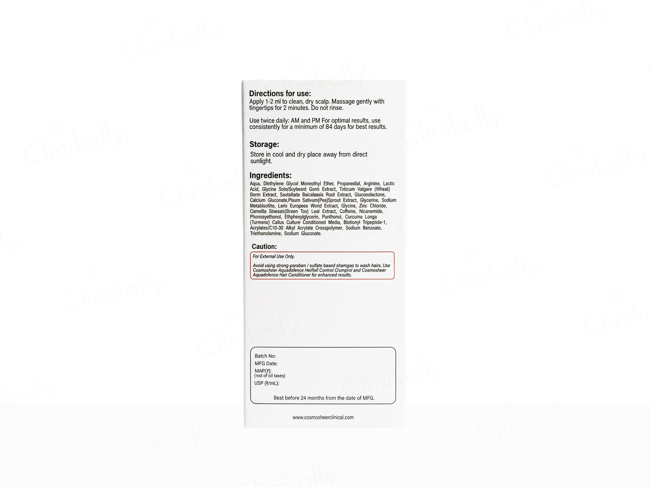 - Apply 1-2 ml of Cosmosheer Clinical Follicurin Advanced Hair Density Serum to clean, dry scalp, massage gently for 2 minutes and do not rinse.