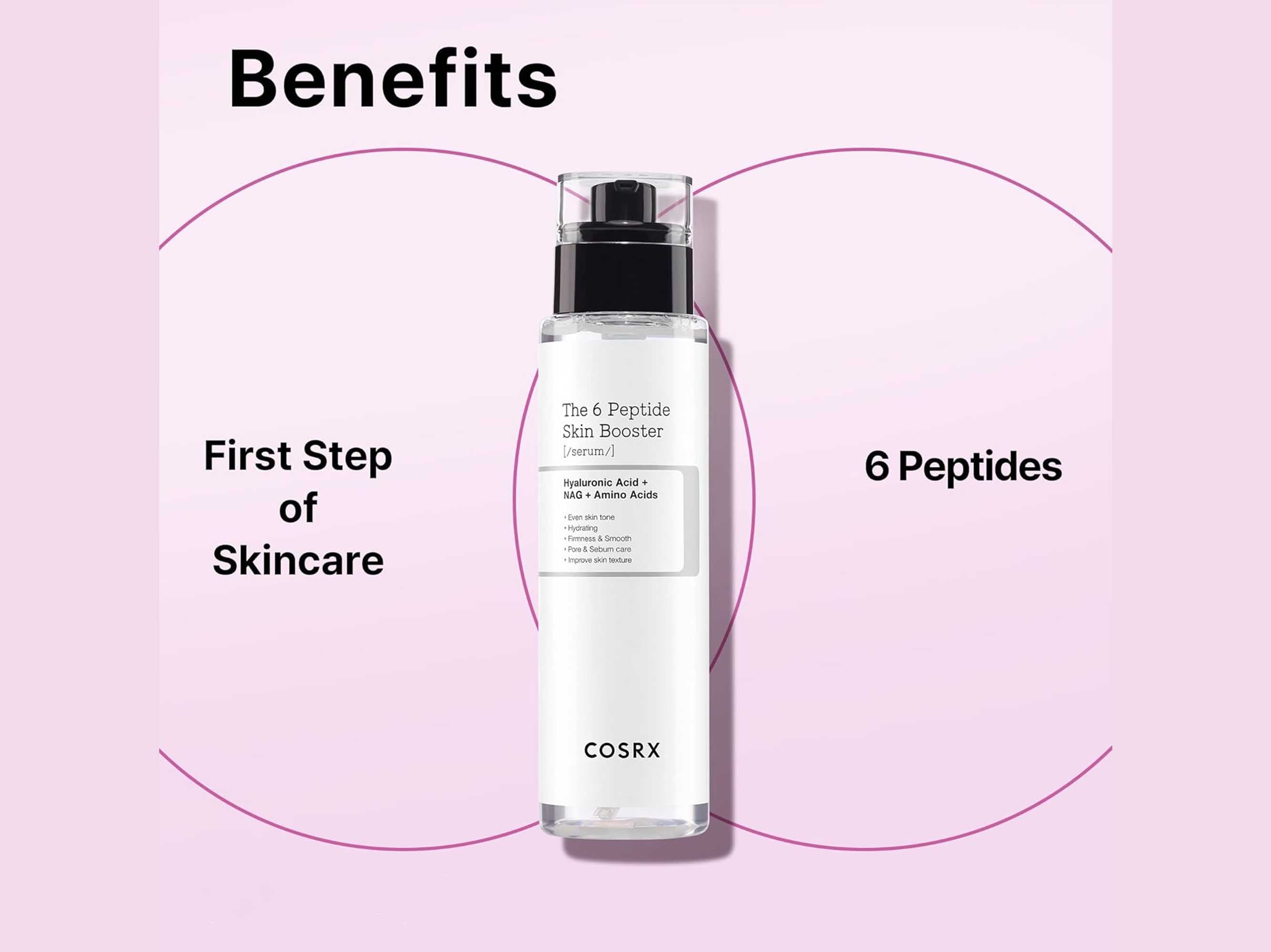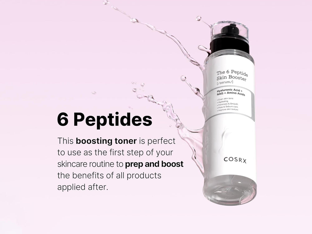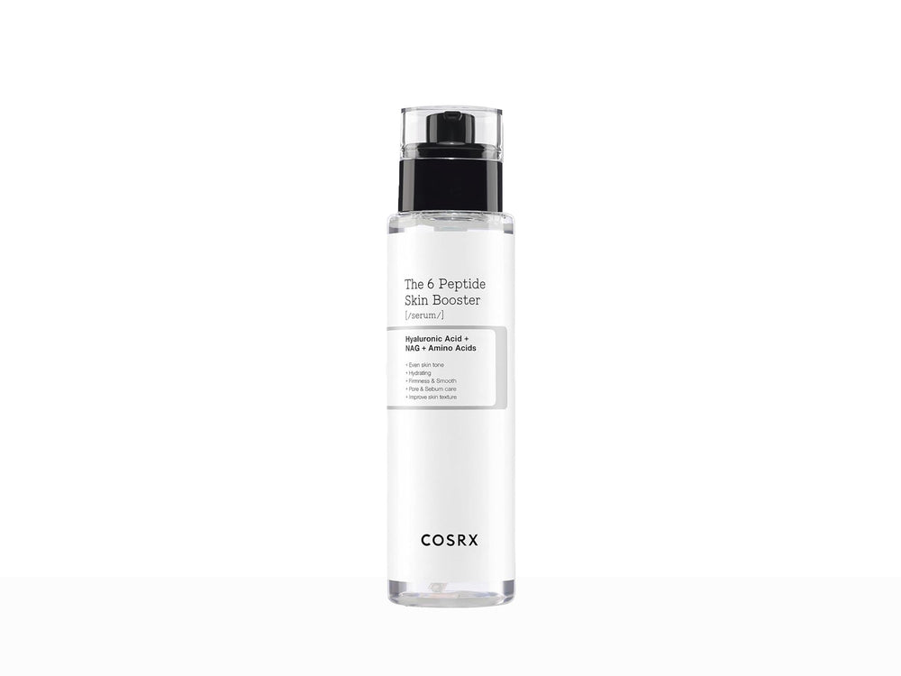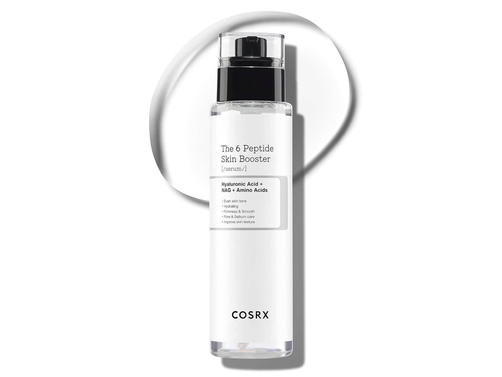 COSRX The 6 Peptide Skin Booster Serum is an anti-aging serum enriched with six peptides to boost collagen production, enhance elasticity, and reduce wrinkles.