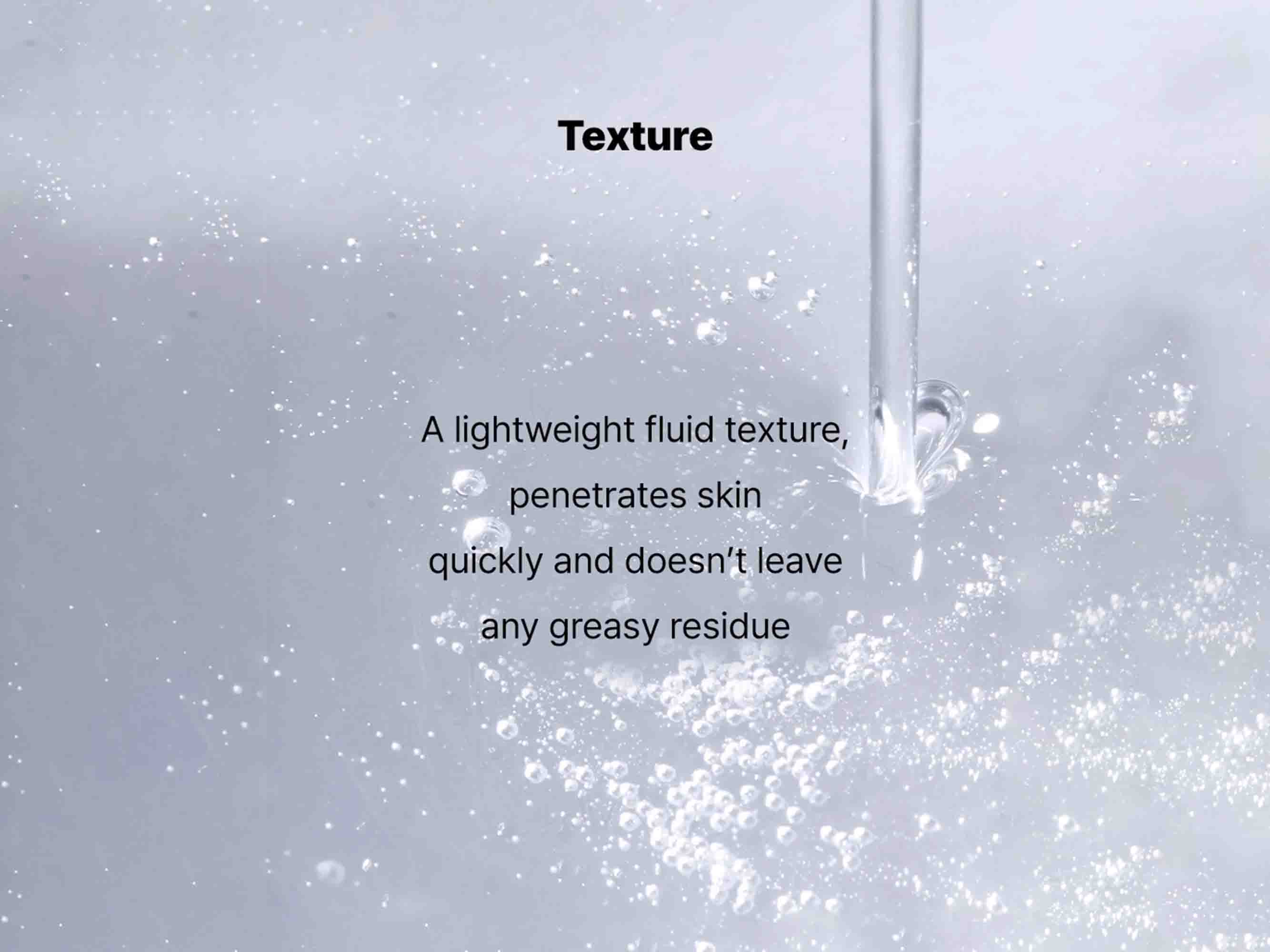 • Use fingertips to gently massage and absorb the serum, starting from the center of the face working towards the edges.
