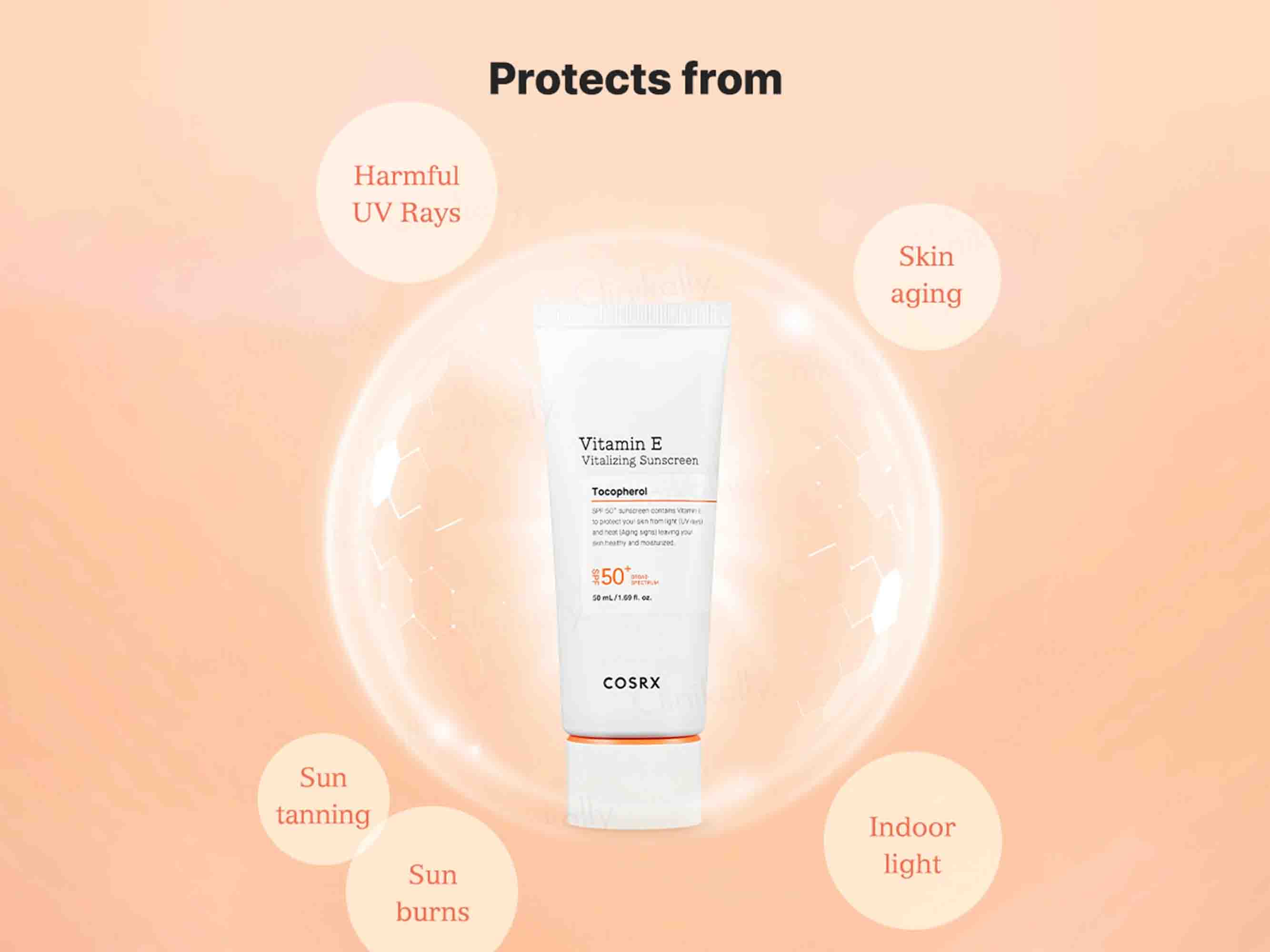 COSRX Vitamin E Vitalizing Sunscreen SPF 50+ offers SPF 50+ broad-spectrum protection.