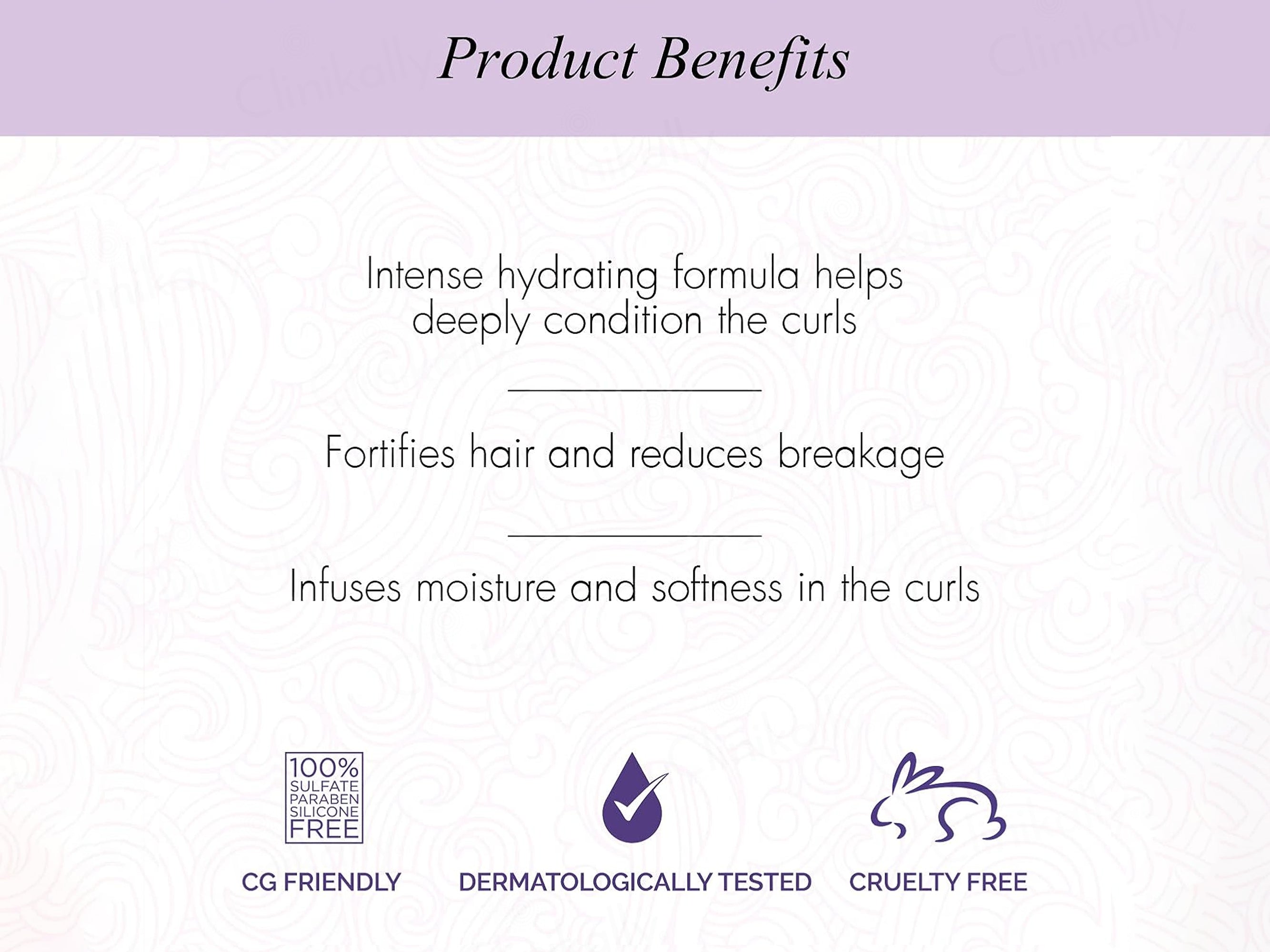Curl Up Intense Hydrating Hair Mask is a deeply nourishing treatment designed to restore moisture, strength, and softness to dry, frizzy, and curly hair. Its rich, creamy formula combines Avocado Butter, Shea Butter, and Mango Butter—three powerful natural emollients that intensely condition curls and reduce breakage. Avocado Butter strengthens strands while enhancing softness and shine, Shea Butter delivers deep hydration and promotes healthy growth, and Mango Butter fortifies hair to minimize split ends and damage. This dermatologically tested, cruelty-free, and CG-friendly mask penetrates each strand to replenish lost moisture, reduce frizz, and leave curls defined, smooth, and bouncy. Free from sulphates, parabens, and silicones, it offers safe and effective care for maintaining healthy, hydrated curls.