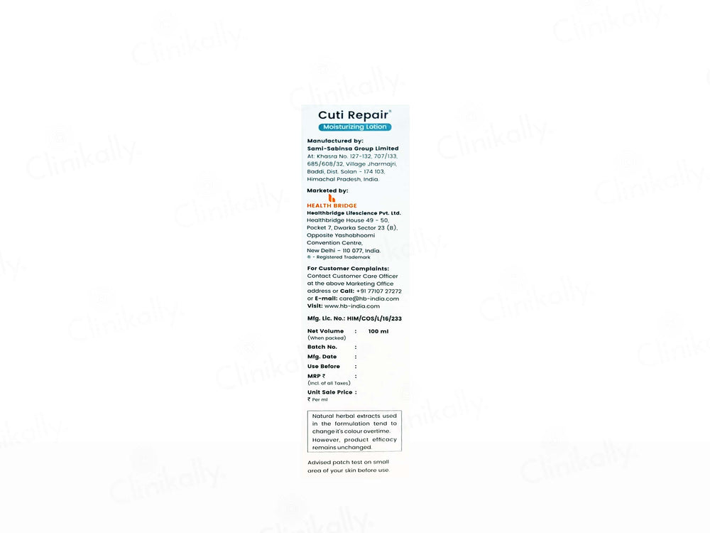 For optimal results, apply Cuti Repair Moisturizing Lotion daily, preferably after bathing.