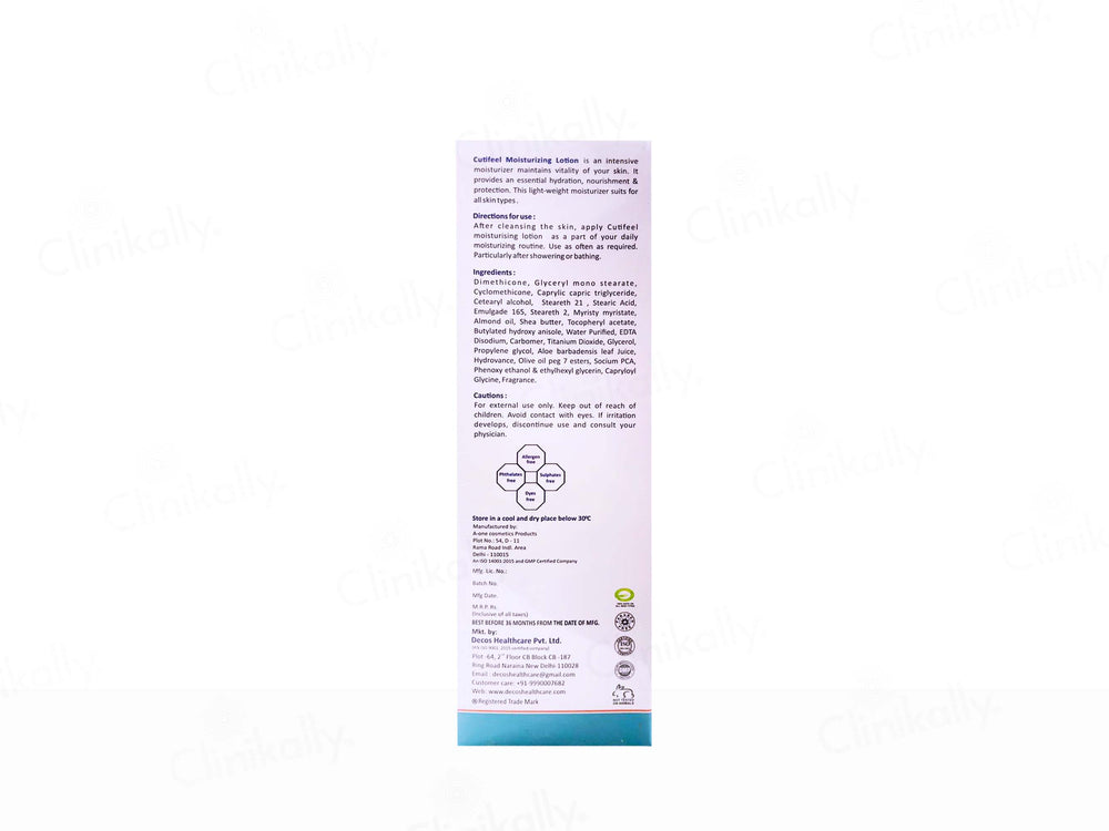 Cutifeel Moisturizing Lotion is a hydrating lotion designed to nourish and soothe dry, sensitive skin.