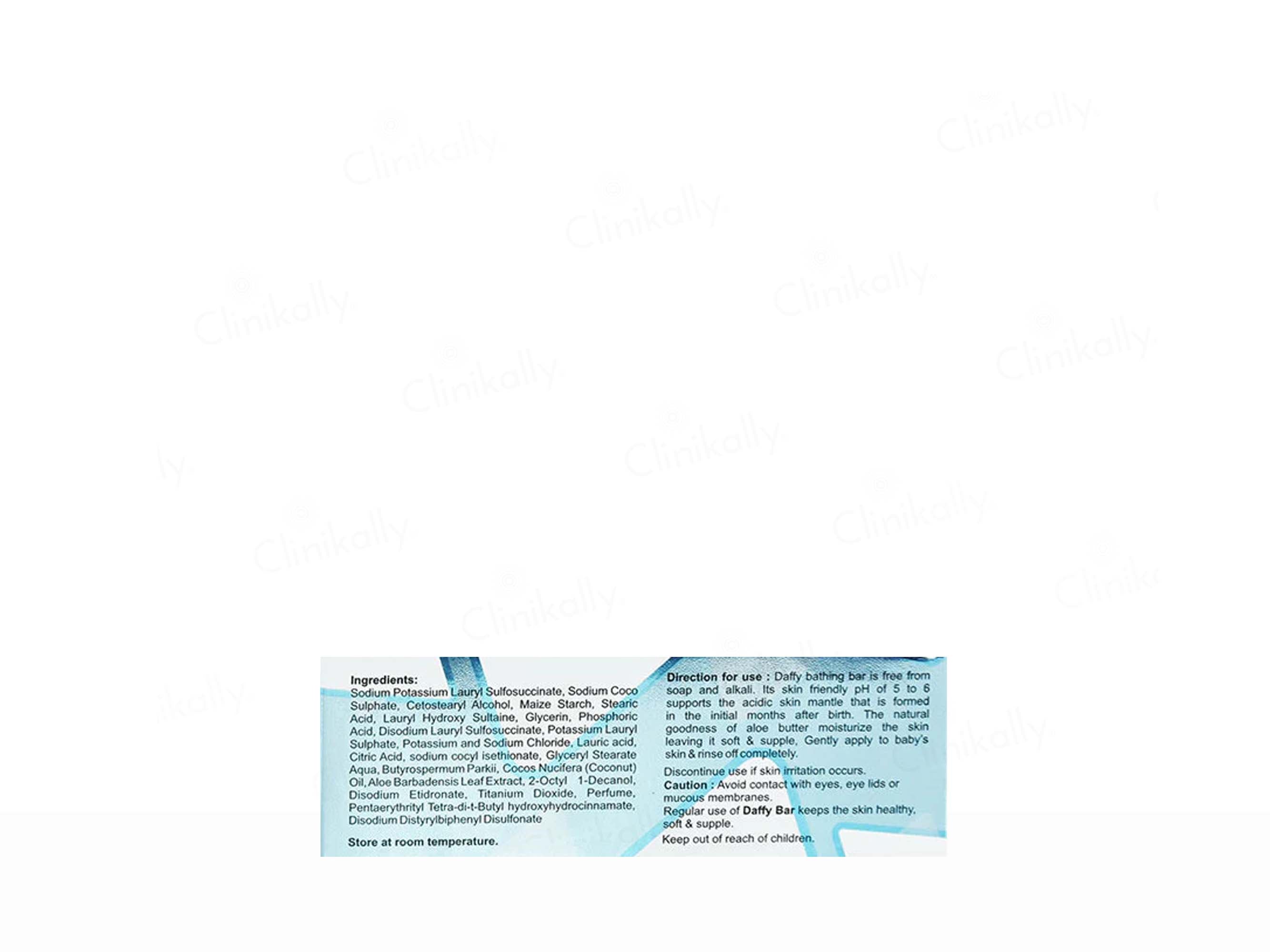 Daffy Baby Cleansing and Moisturising Bathing Bar is a dermatologist-tested syndet bar specially formulated for baby’s delicate skin. Enriched with the natural goodness of Aloe Butter, Shea Butter, and Coconut Oil, it gently cleanses while providing deep nourishment and hydration. The soap-free, pH-balanced formula maintains skin’s natural moisture barrier and prevents dryness or irritation. Infused with Aloe Vera Leaf Extract and Shea Butter, it soothes and softens the skin, keeping it supple and healthy. Ideal for daily use, Daffy Baby Bar ensures gentle cleansing and lasting moisturization, leaving your baby’s skin smooth, fresh, and protected.