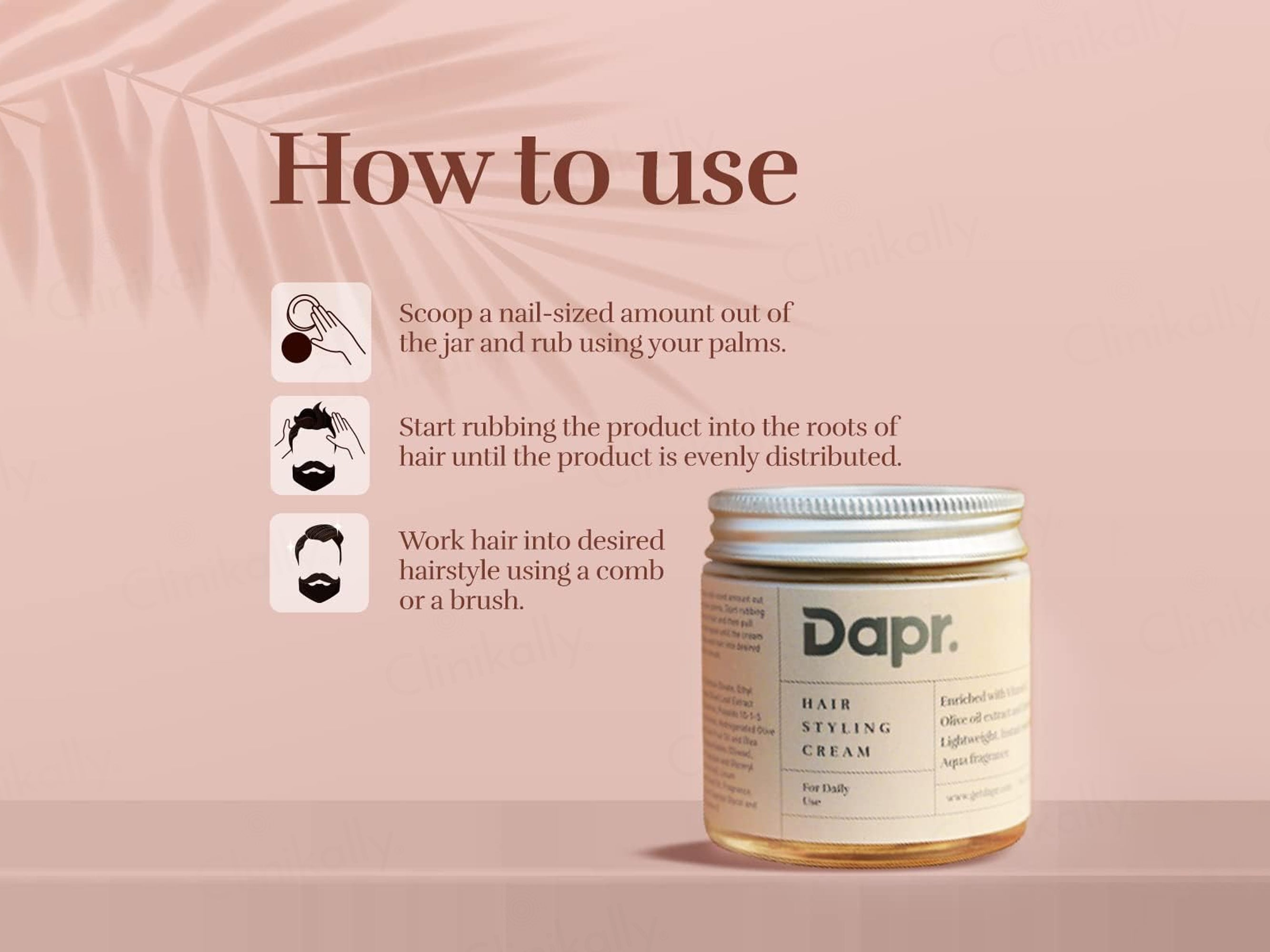 Dapr. Hair Styling Cream is a lightweight, daily-use product that nourishes and styles hair with natural ingredients.