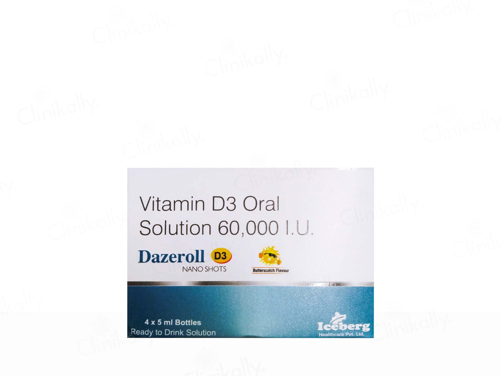 Dazeroll D3 Nano Shots is a highly bioavailable vitamin D3 supplement designed to support bone health, immune function, and overall well-being. Each dose provides 60,000 IU of Vitamin D3, which is essential for calcium absorption and maintaining healthy bones and teeth. The nano formulation ensures rapid absorption and maximum efficacy. This oral solution is easy to take and is ideal for individuals with vitamin D deficiency or those needing to boost their vitamin D levels.
