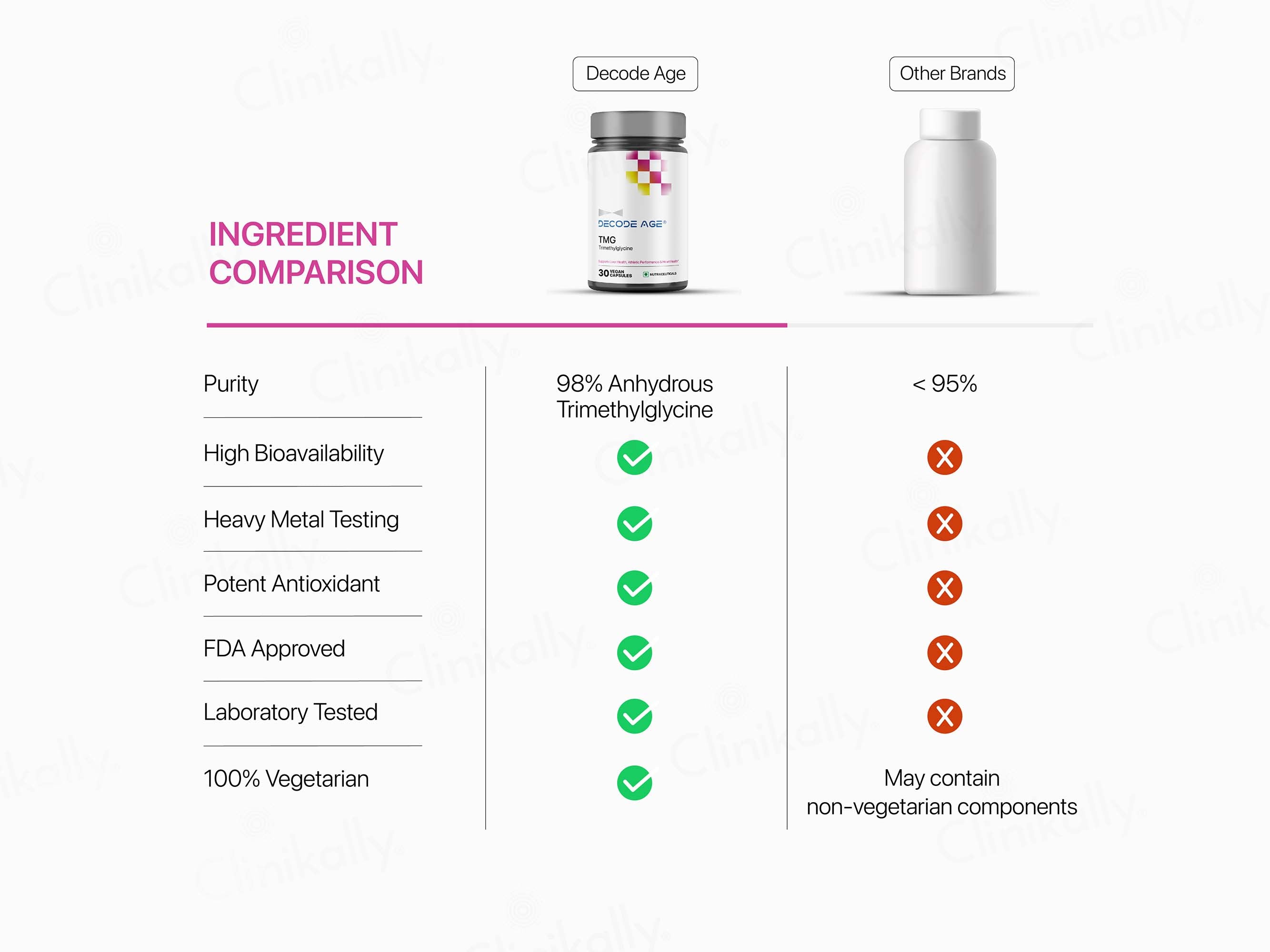 Decode Age TMG Vegan Capsule helps regulate methylation processes and supports overall health.