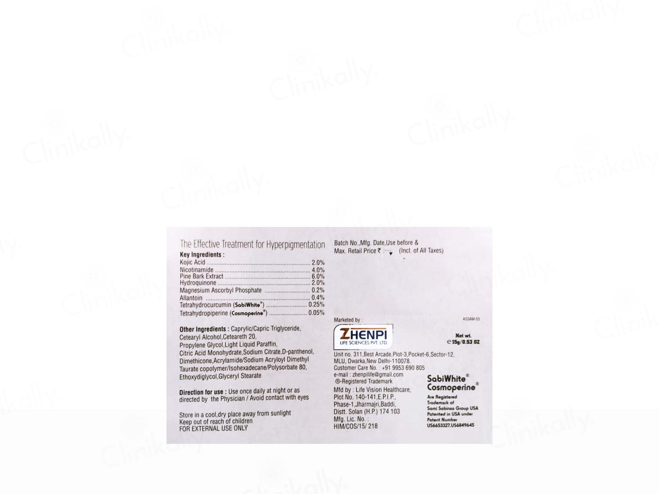 Derlite HS Cream is a potent skincare treatment designed specifically to address hyperpigmentation and uneven skin tone. Enriched with active ingredients like Kojic Acid, Niacinamide, Pine Bark Extract, and Hydroquinone, it works to lighten dark spots and reduce pigmentation. The inclusion of Magnesium Ascorbyl Phosphate and Allantoin helps to brighten and soothe the skin, while Tetrahydrocurcumin (SobiWhite) and Tetrahydropiperine (Cosmoperine) enhance absorption, ensuring maximum effectiveness. Ideal for targeting stubborn pigmentation, this cream helps restore a smoother, more radiant complexion with regular use.
