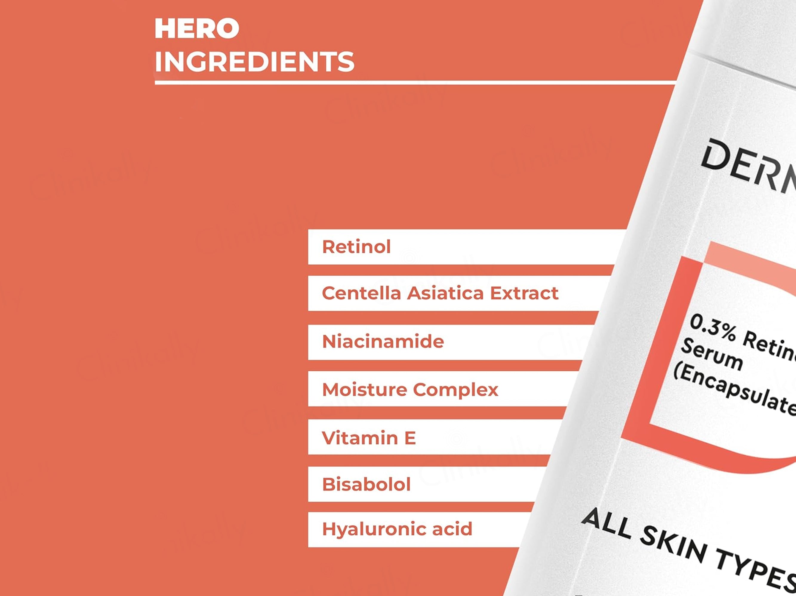 Dermabay 0.3% Encapsulated Retinol Face Serum is a potent anti-aging treatment designed to rejuvenate all skin types for adults. Enriched with encapsulated retinol, centella asiatica extract, niacinamide, and hyaluronic acid, this lightweight formula reduces fine lines and wrinkles, boosts skin firmness, and promotes a smoother complexion. Ideal for nightly use, it offers a clinically advanced solution to enhance skin texture, support cell renewal, and deliver long-lasting hydration for a youthful glow over time.