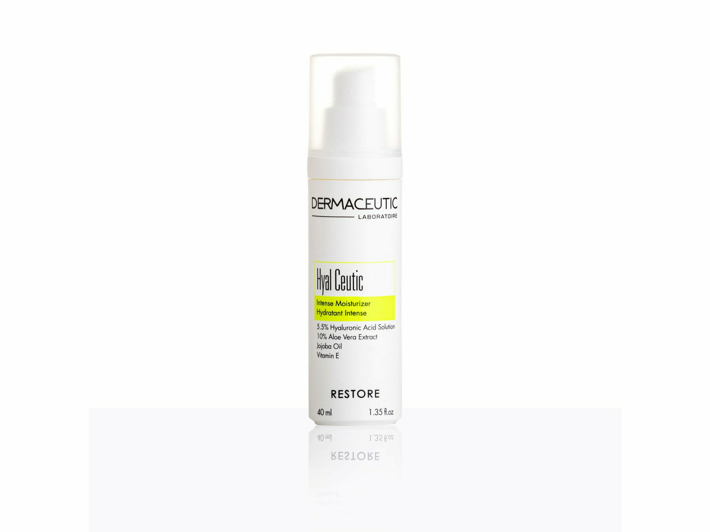 Dermaceutic Hyal Ceutic Intense Hydrating Cream deeply hydrates the skin with high and low weight hyaluronic acids while soothing and repairing with aloe vera.