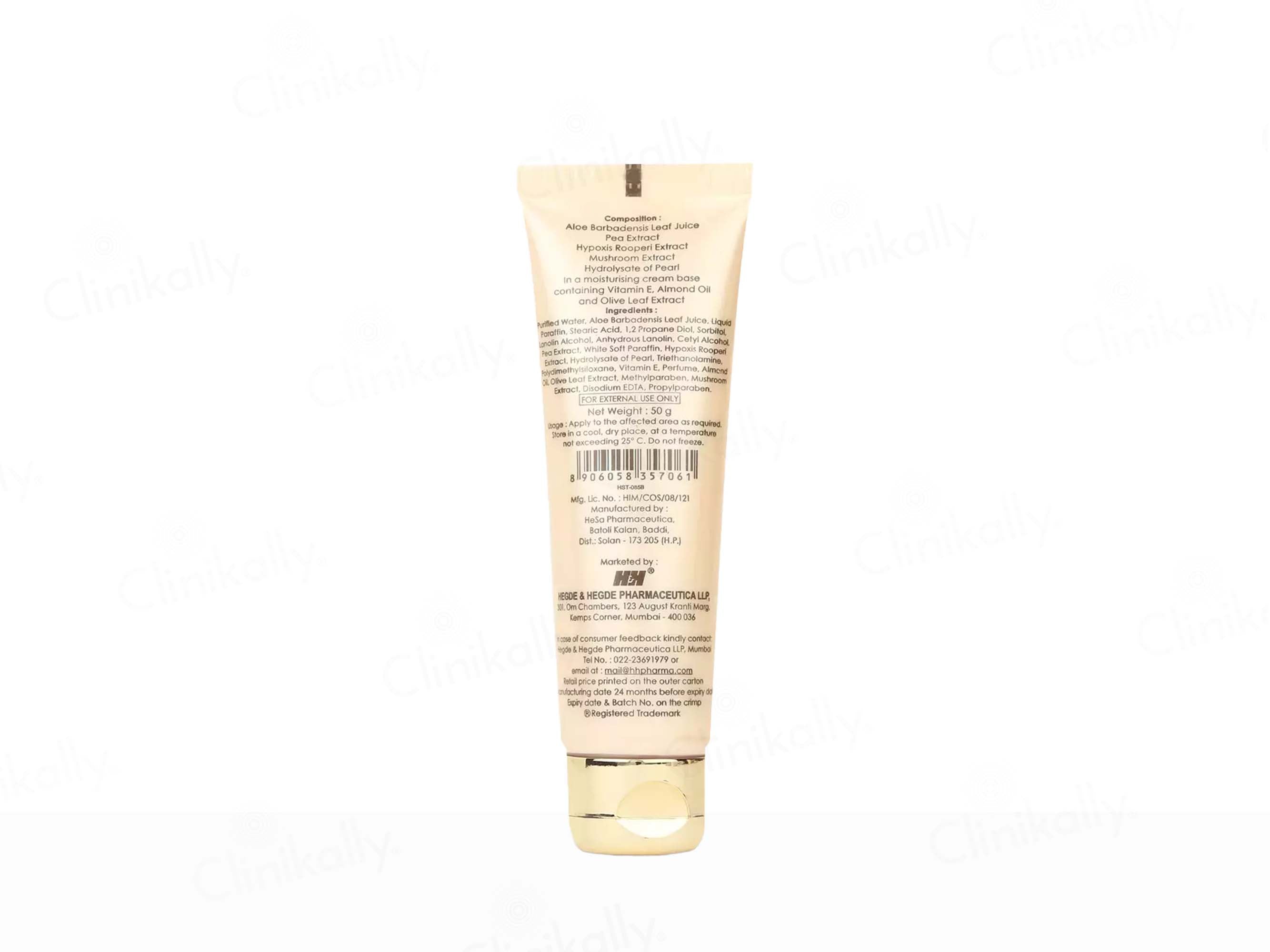 Dermadew Glow Cream is a radiance-enhancing formula enriched with aloe vera leaf juice, pea extract, mushroom extract, and hydrolysate of pearl. Designed to improve skin texture and hydration, it is blended in a moisturizing cream base with nourishing agents like vitamin E, almond oil, and olive leaf extract. This soothing and revitalizing cream works to reduce dullness and promote a visibly healthy glow, making it ideal for daily skincare. Suitable for all skin types and safe for regular use.