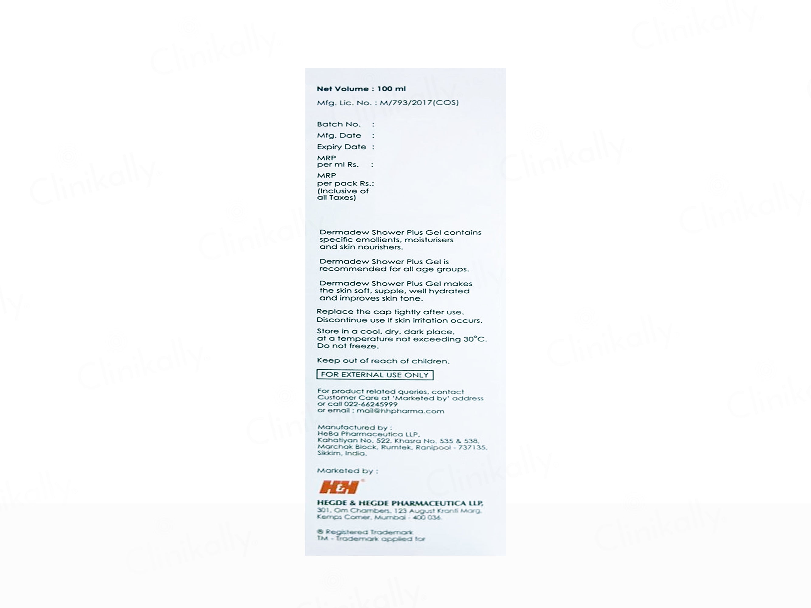 - Apply a generous amount of Dermadew Shower Plus Gel to a loofah, sponge, or directly onto your hands.