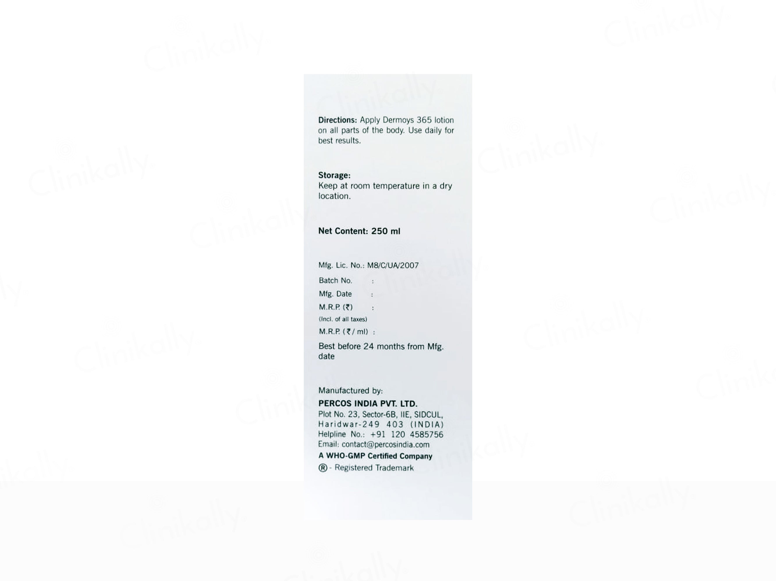 - Apply Dermoys 365 Lotion on all parts of the body.