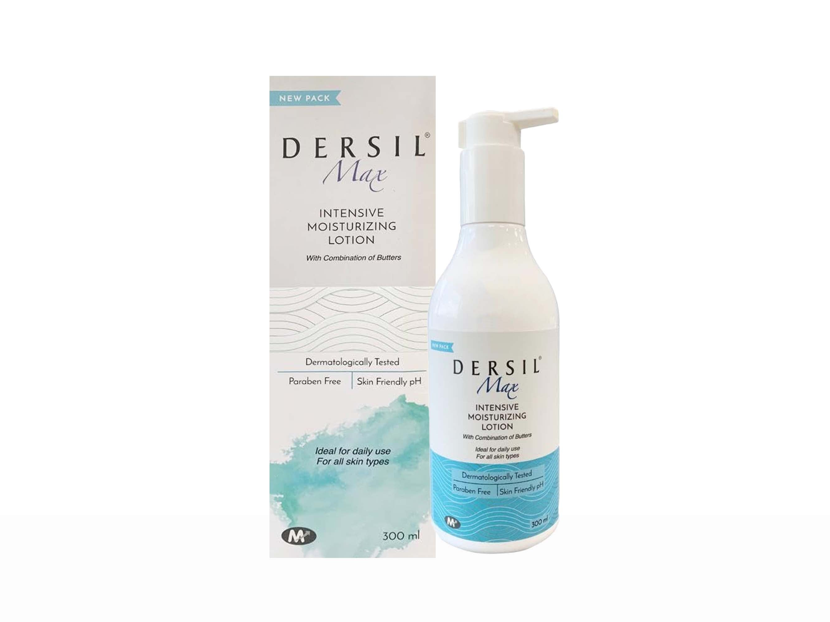 Dersil Max Intensive Moisturizing Lotion is a dermatologically tested, paraben-free lotion that deeply hydrates, softens, and heals dry skin with a unique blend of butters. Its quick-absorbing formula provides intensive moisturization and long-lasting relief, making it ideal for all skin types and daily use, enhancing skin's natural barrier and texture.