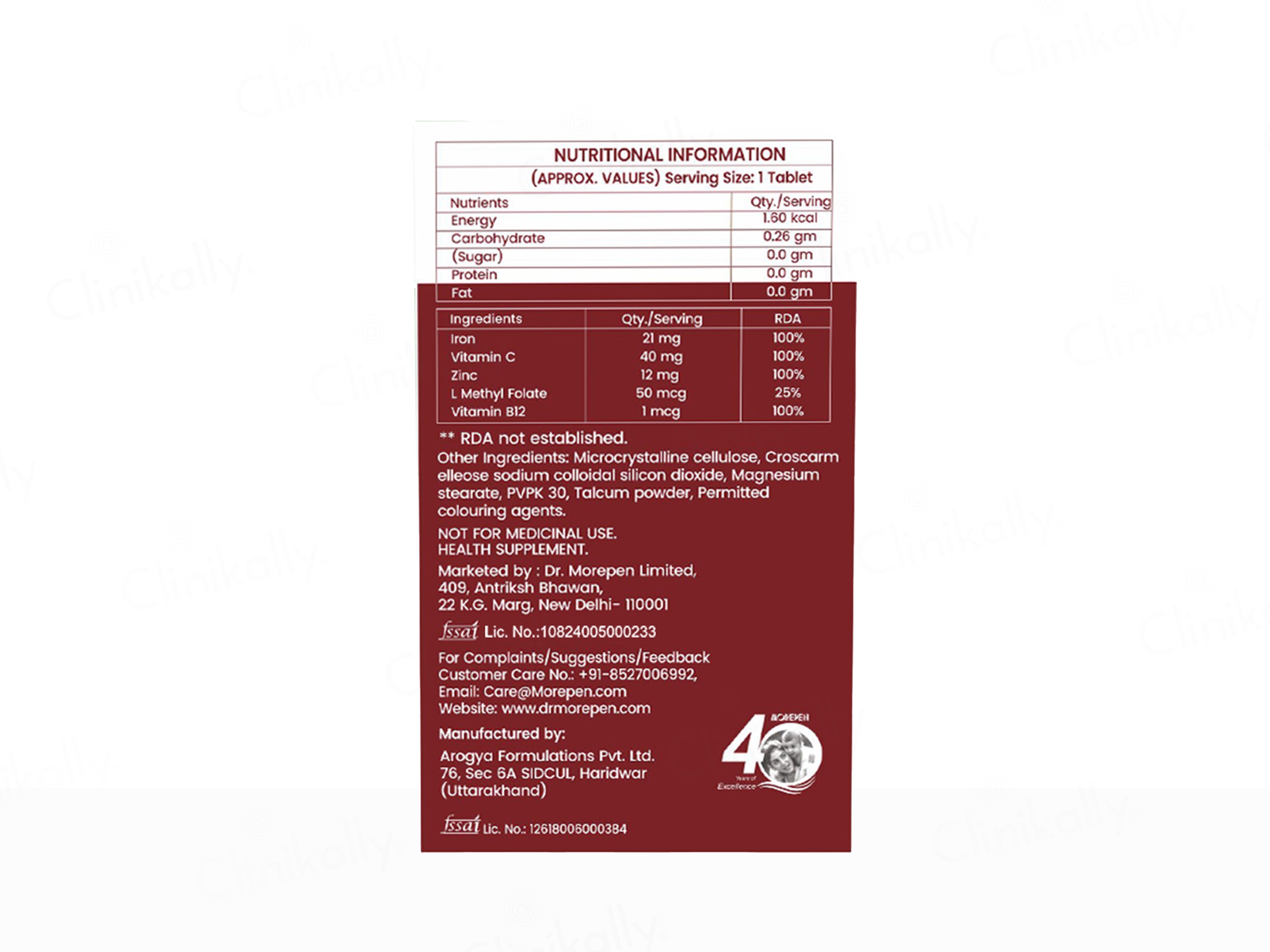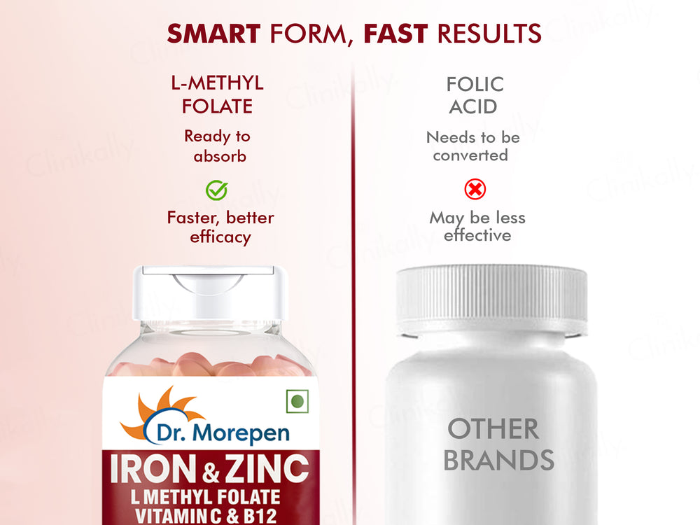 Dr. Morepen Iron & Zinc, L-Methyl Folate, Vitamin C & B12 Tablet