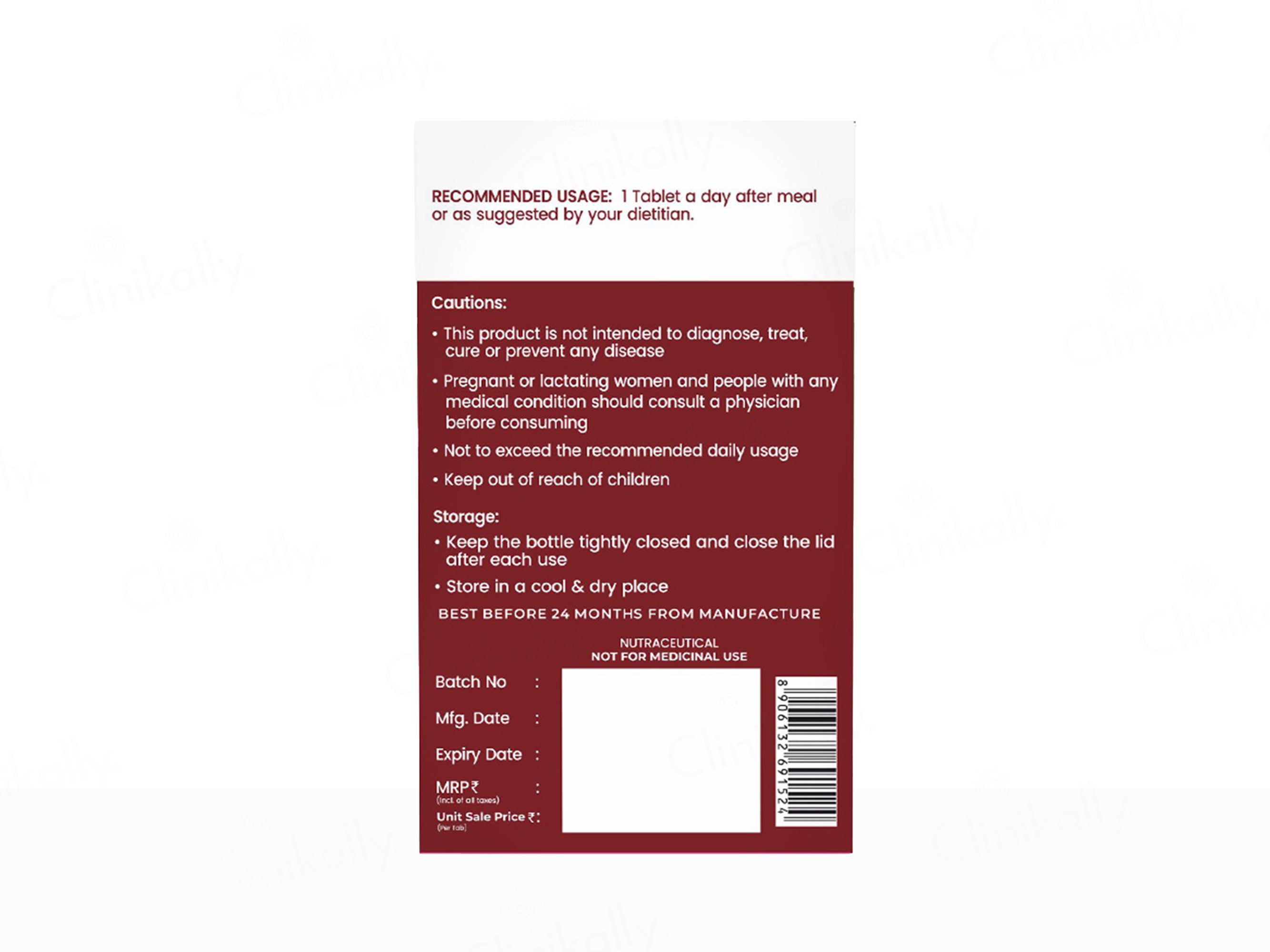 - Take one tablet daily after a meal.