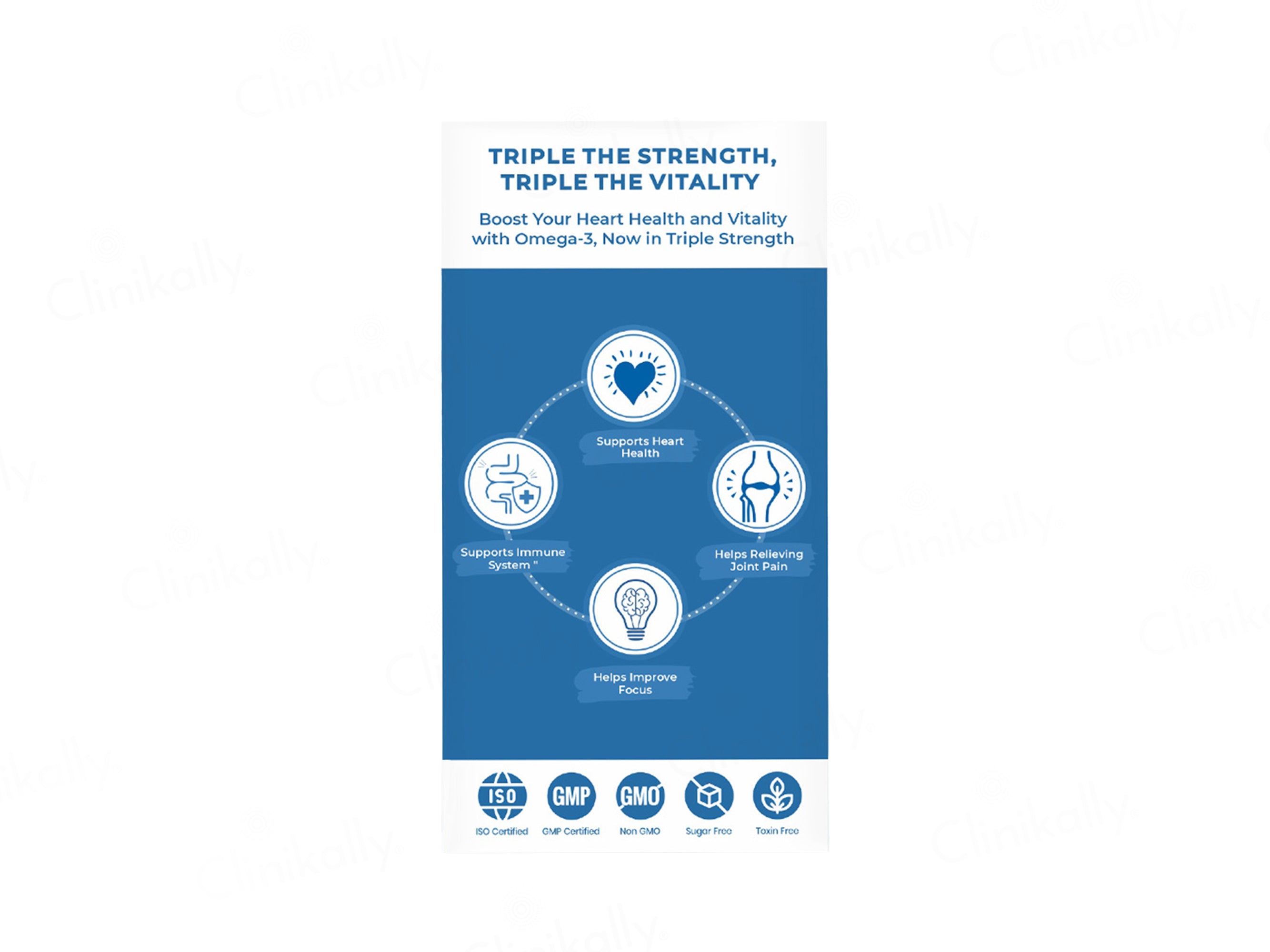 The supplement promotes cardiovascular health, enhances cognitive function, supports eye health, reduces joint inflammation, and contributes to healthier skin.