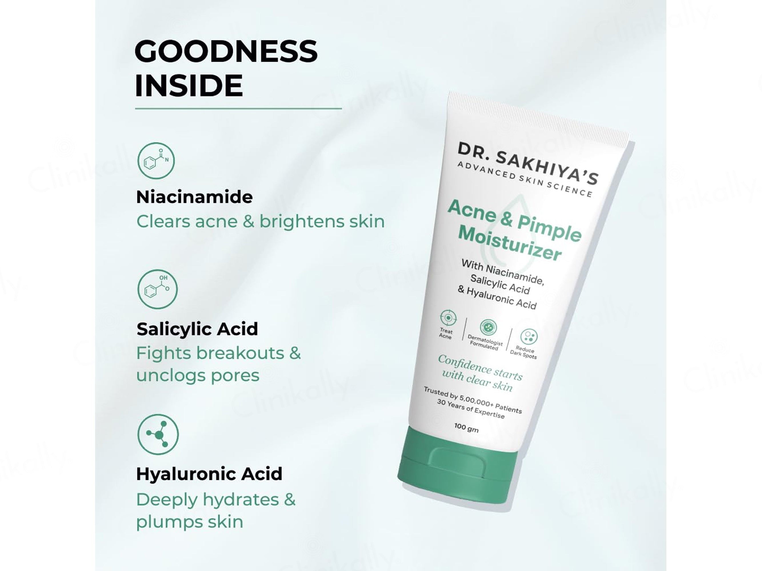 - Apply an adequate amount of Dr. Sakhiya’s Acne & Pimple Moisturizer on clean skin and massage gently until absorbed; use daily or as advised by your dermatologist.