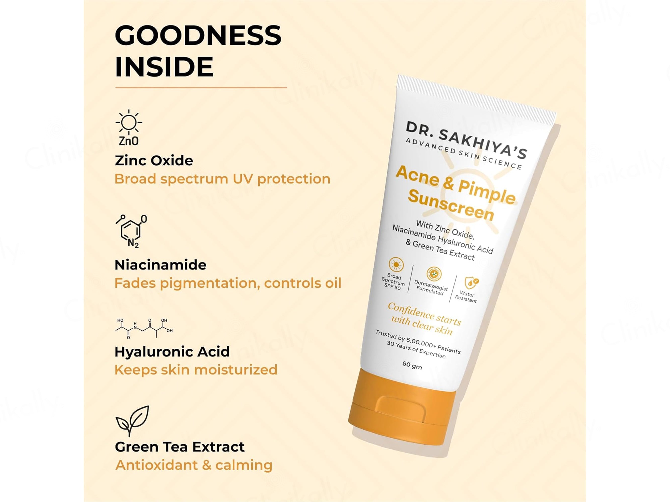 Yes, Dr. Sakhiya’s Acne & Pimple Sunscreen SPF 50 is specially formulated for acne-prone skin and is lightweight and non-greasy.