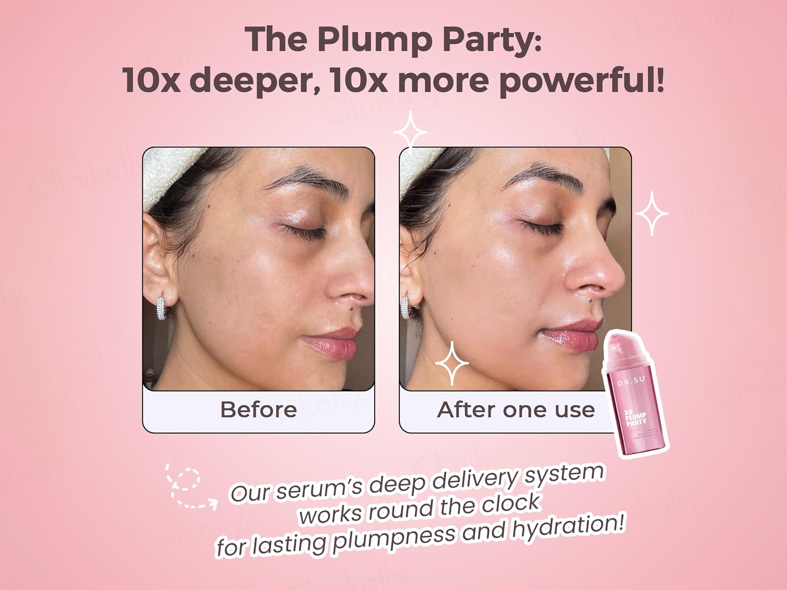 Dr. Su XO Plump Party Exosome Face Serum is an advanced hydrating and anti-aging serum powered by 2% Exosomes, 2% Hyaluronic Acid, and 1% Copper Peptide Complex, designed to plump, firm, and rejuvenate the skin.