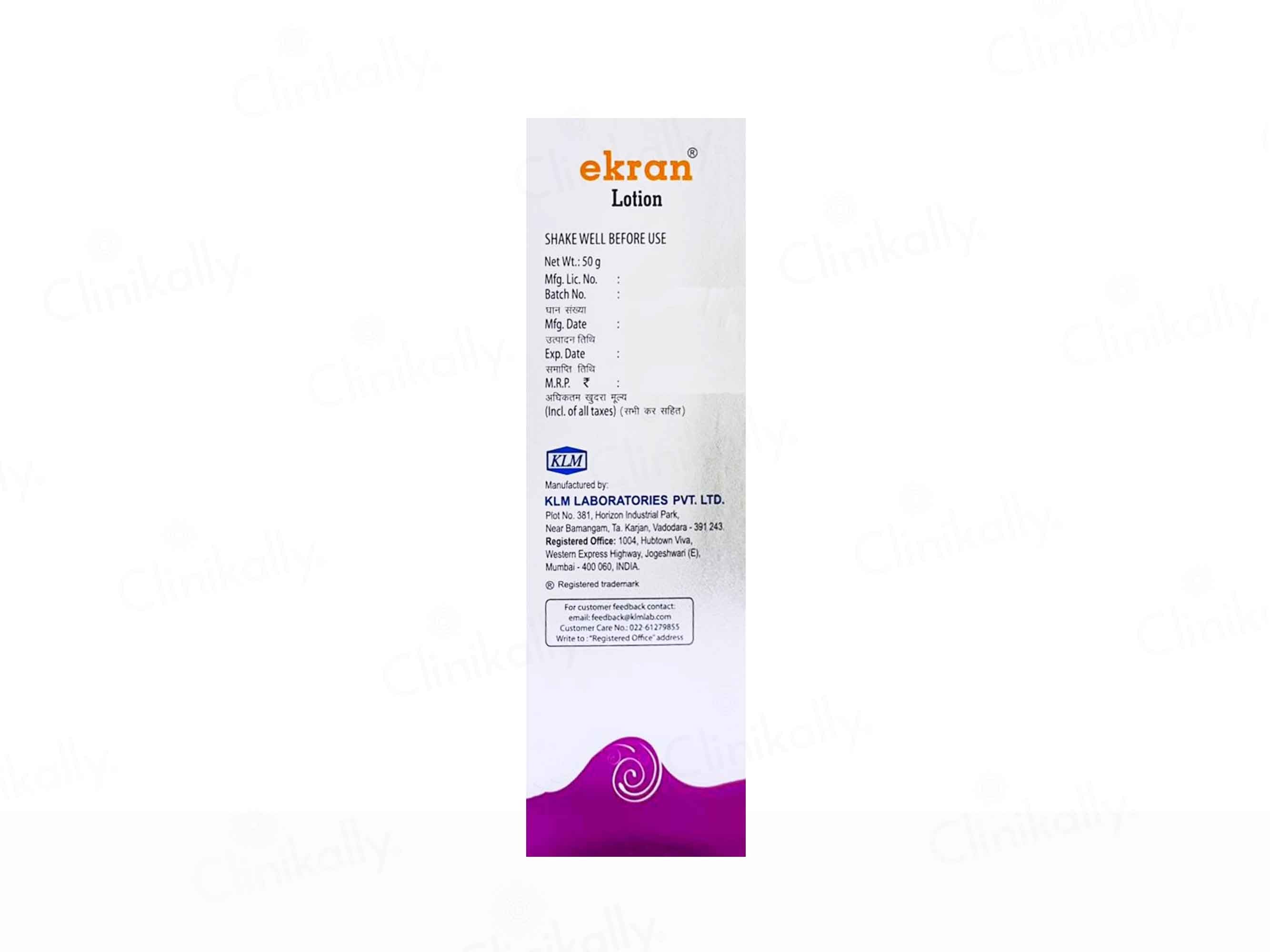 Ekran Sunscreen Lotion SPF 30 PA++ is a broad-spectrum sunscreen that protects the skin from harmful UVA and UVB rays, preventing sunburn and premature aging.