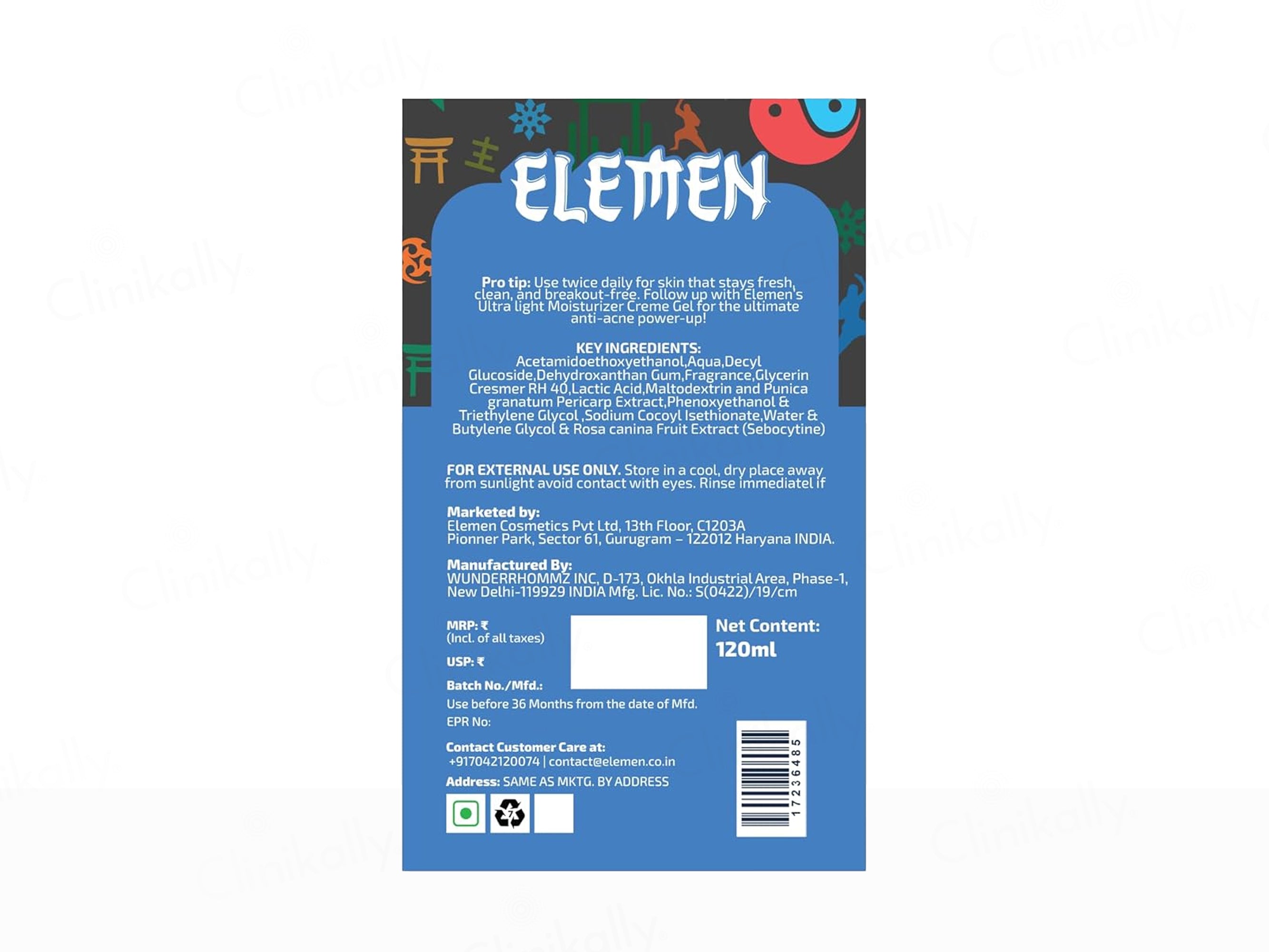 - Follow up with Elemen Ultra Light Moisturizer Creme Gel for the ultimate anti-acne power-up.