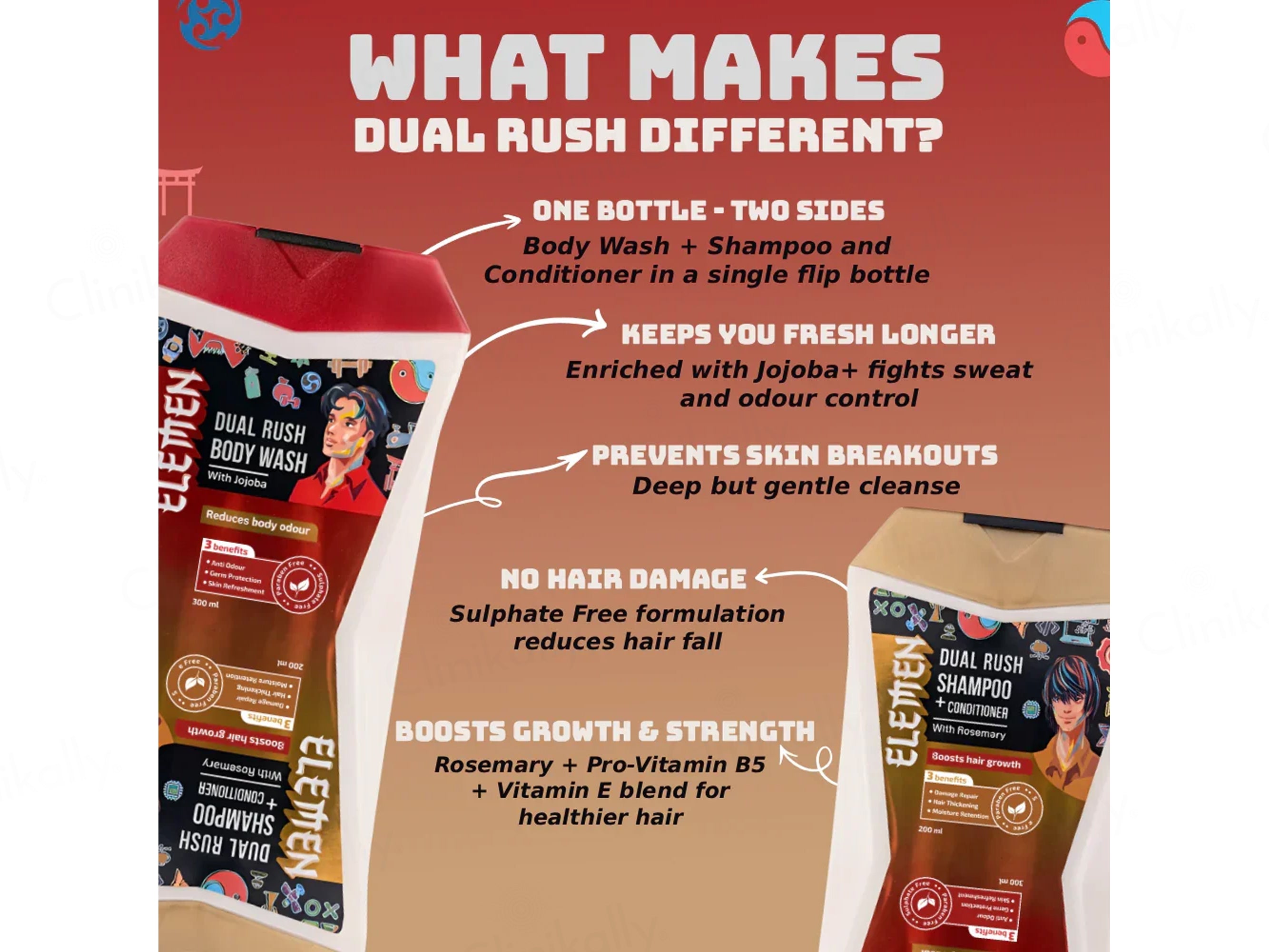 Elemen Dual Rush Body Wash (300 ml) & Shampoo + Conditioner (200 ml)