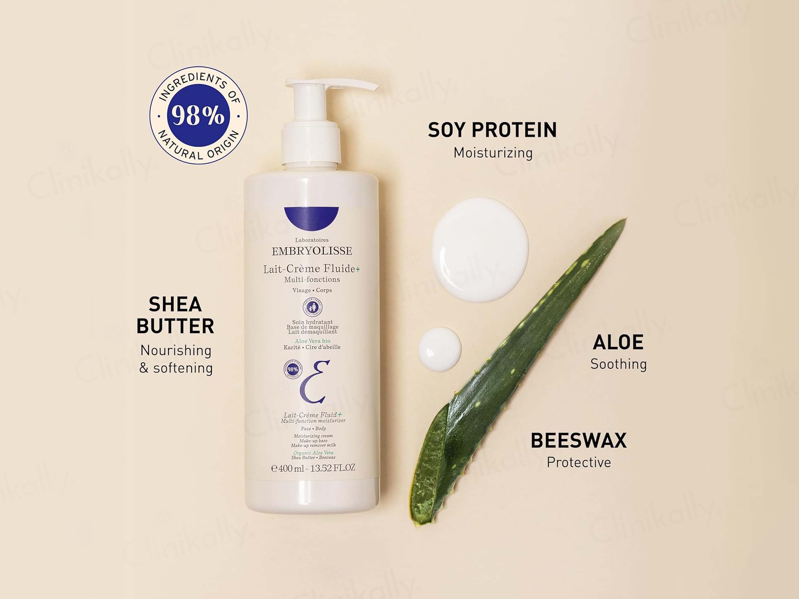 Embryolisse Lait Crème Fluide Plus Multi-function Moisturizing Cream is a versatile, hydrating cream that nourishes and protects both the face and body. Enriched with Aloe Vera, Shea Butter, and Beeswax, this lightweight formula provides long-lasting moisture, leaving skin soft and smooth. It works as a makeup base, removing makeup gently while keeping the skin hydrated and balanced. Perfect for all skin types, it offers multi-purpose benefits for daily skincare, including deep hydration, soothing properties, and a healthy glow with a non-greasy finish.