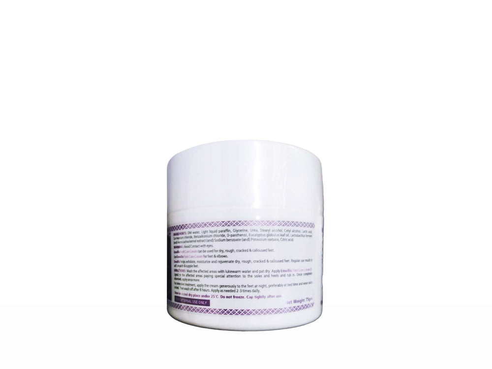 Emollis Foot Care Cream is a deeply nourishing formula designed to exfoliate, moisturize, and rejuvenate dry, rough, cracked, and calloused feet. Enriched with Glycerine, Urea, D-Panthenol, Lactic Acid, and Eucalyptus Leaf Oil, it provides intense hydration while softening thickened skin and promoting healing. The addition of Light Liquid Paraffin and Lactobacillus Ferment helps strengthen the skin barrier and improve smoothness. Suitable for both feet and elbows, this cream delivers visible results with regular use, leaving your skin soft, supple, and refreshed. Ideal for daily foot care and repair therapy.