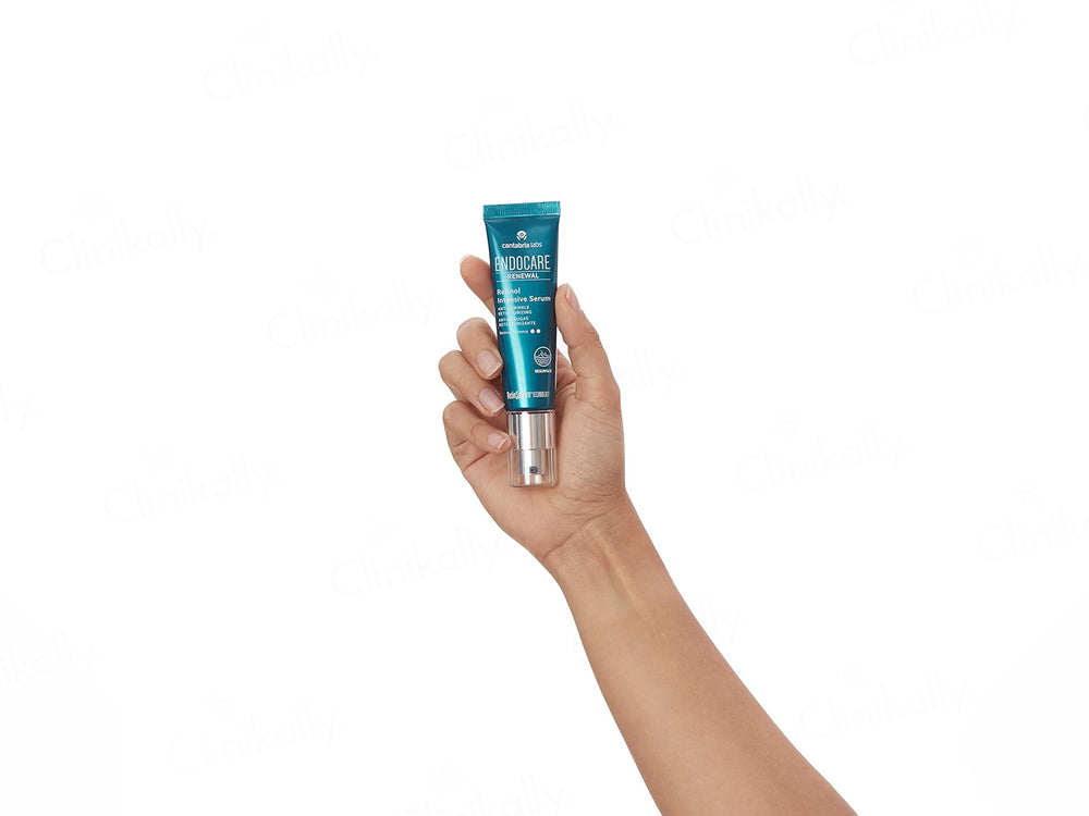 - Apply 2-3 drops of Endocare Renewal 0.5% Pure Retinol Intensive Face Serum at night.