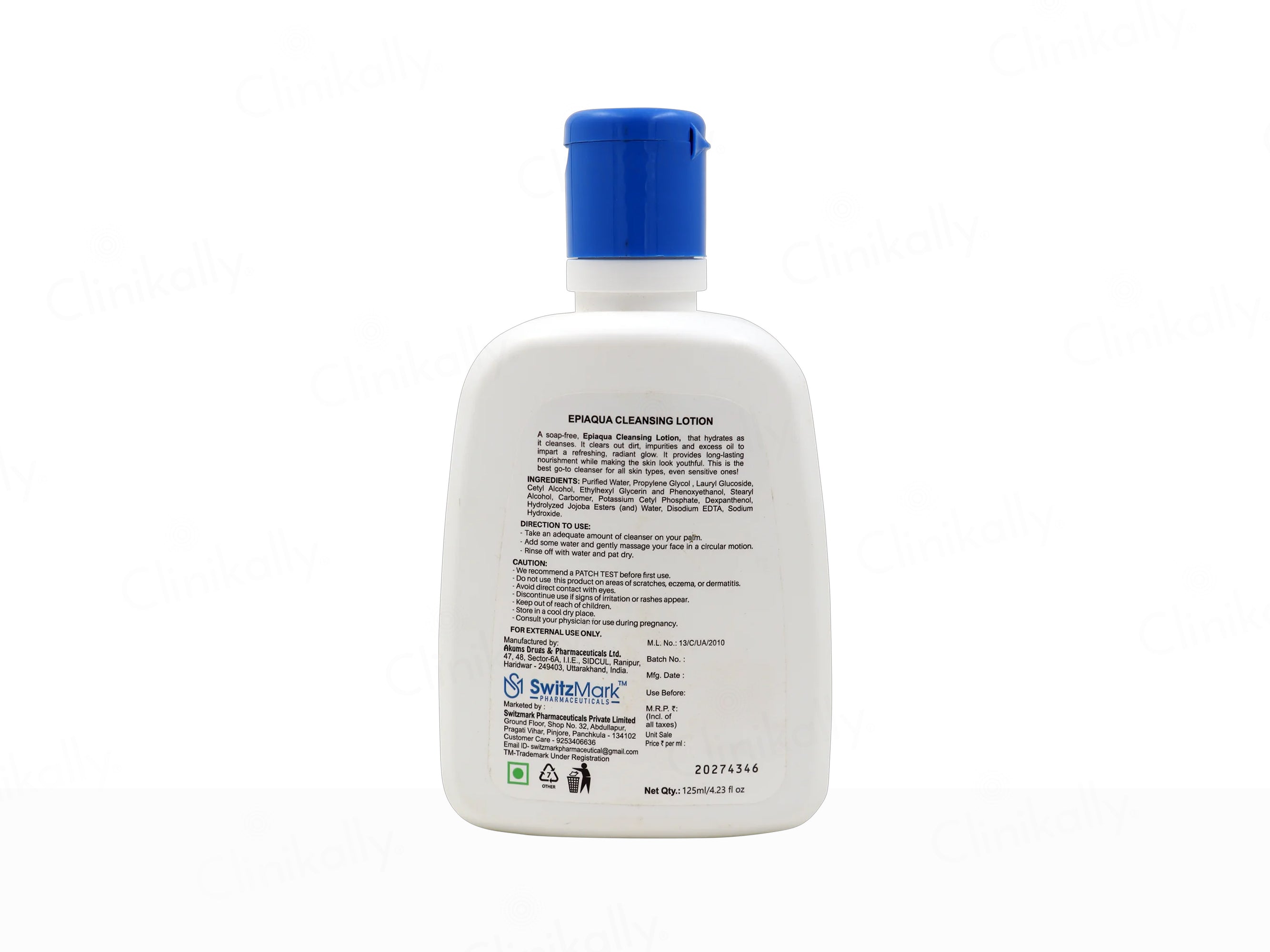 EpiAqua Cleansing Lotion by SwitzMark Cosmeceuticals is a soap-free, dermatologist-tested lotion specially formulated to hydrate, cleanse, and retain moisture for dry to normal sensitive skin. It gently removes dirt, impurities, and excess oil without stripping the skin’s natural barrier, leaving it soft and refreshed. Enriched with key ingredients like Glycerin, Jojoba Oil, and Pro Vitamin B5 (Panthenol), the formula helps restore hydration, soothe irritation, and maintain the skin’s suppleness. Supporting ingredients such as Propylene Glycol, Lauryl Glucoside, Cetearyl Alcohol, and Ethylhexylglycerin enhance texture and mild cleansing efficacy, while Disodium EDTA and Sodium Hydroxide help balance and stabilize the formulation for gentle daily use. The lotion is paraben-free, sulfate-free, fragrance-free, and soap-free, making it ideal for maintaining healthy, moisturized, and comfortable skin without causing dryness or irritation.