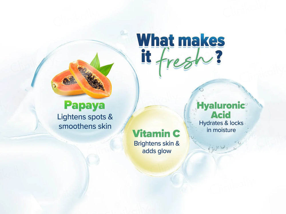 Key ingredients include niacinamide, hyaluronic acid, and green tea extract.