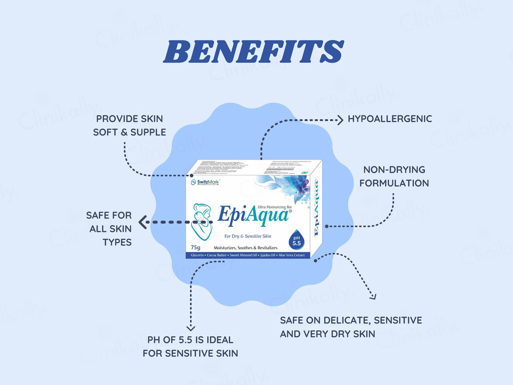 Epiaqua Ultra Moisturizing Bar For Dry & Sensitive Skin is a deeply nourishing cleansing bar designed to hydrate, protect, and soothe dry or sensitive skin while preserving its natural moisture barrier. Infused with shea butter, coconut oil, and oatmeal, it gently cleanses, reduces dryness, and calms irritation without causing discomfort. Its fragrance-free, soap-free formula ensures minimal irritation, leaving skin soft and hydrated. Suitable for dry and sensitive skin types, this bar promotes healthy, moisturized skin with daily use.