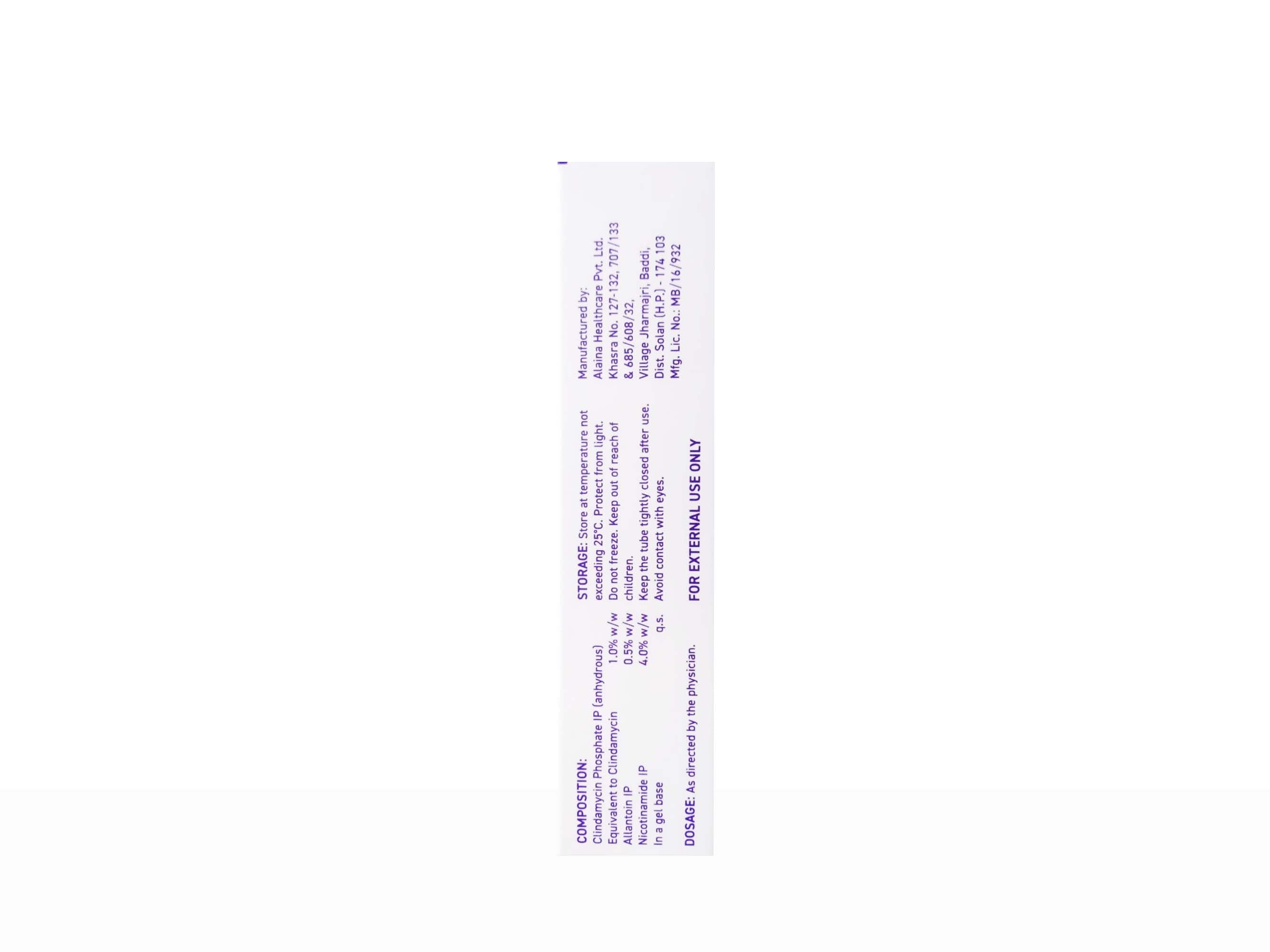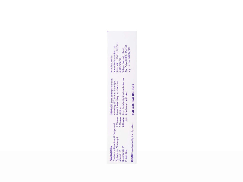 Clindamycin IP (1% w/w) + Nicotinamide IP (4% w/w) + Allantoin (0.5% w/w)