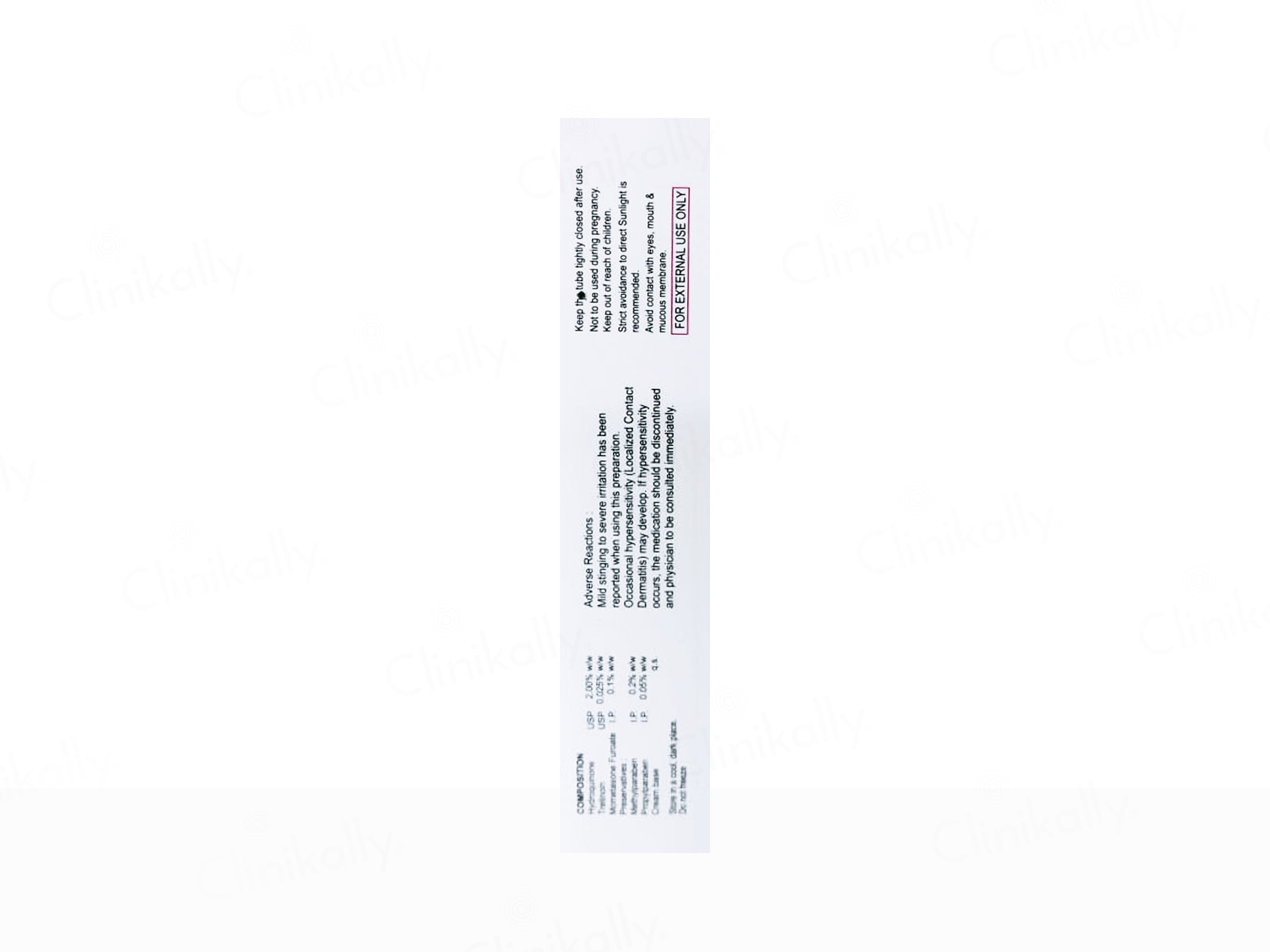 Etaze-H.T. Cream contains Hydroquinone USP (2.00% w/w), Tretinoin USP (0.025% w/w), and Mometasone Furoate IP (0.1% w/w).