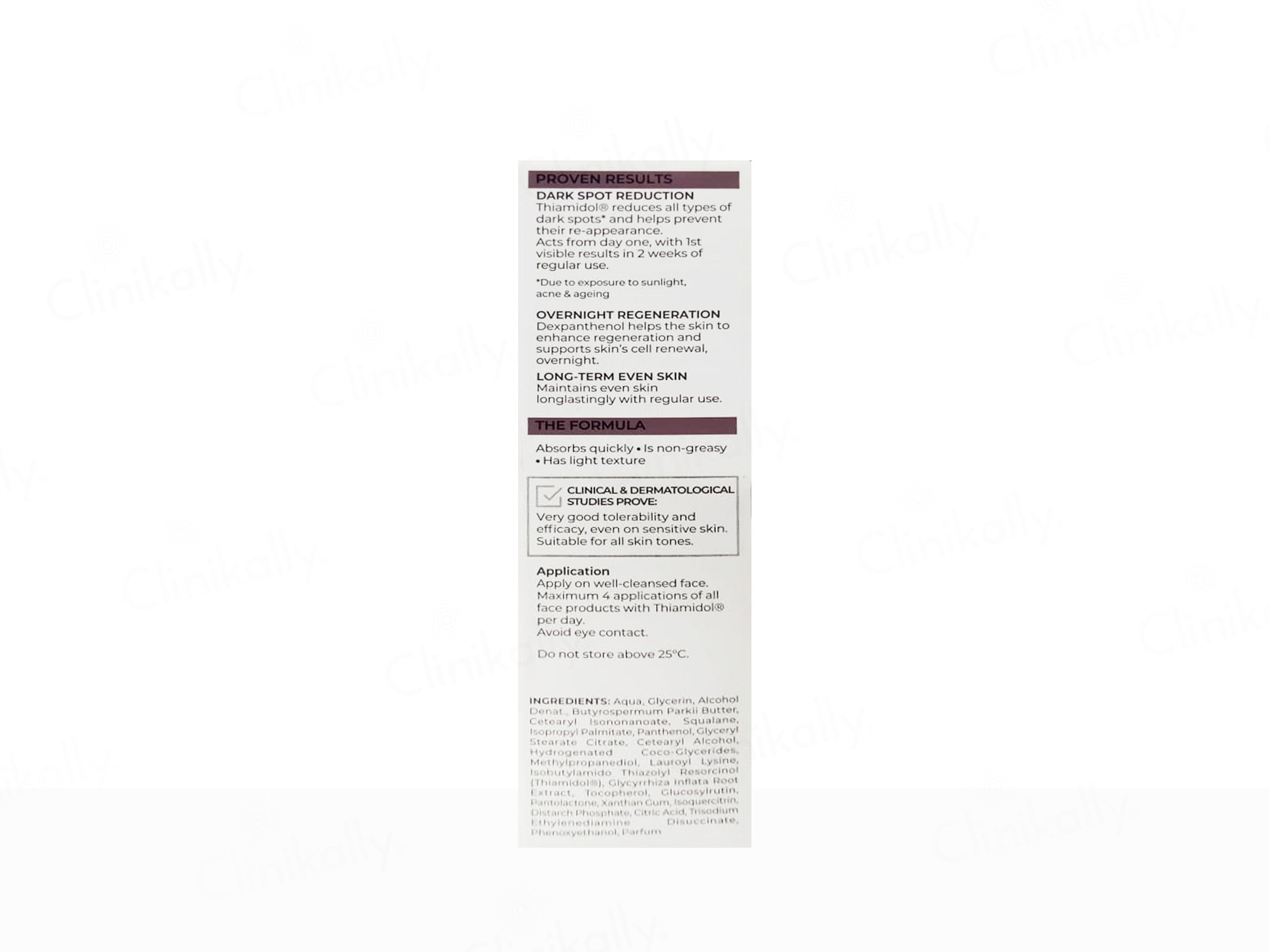 - Patented Thiamidol reduces dark spots overnight