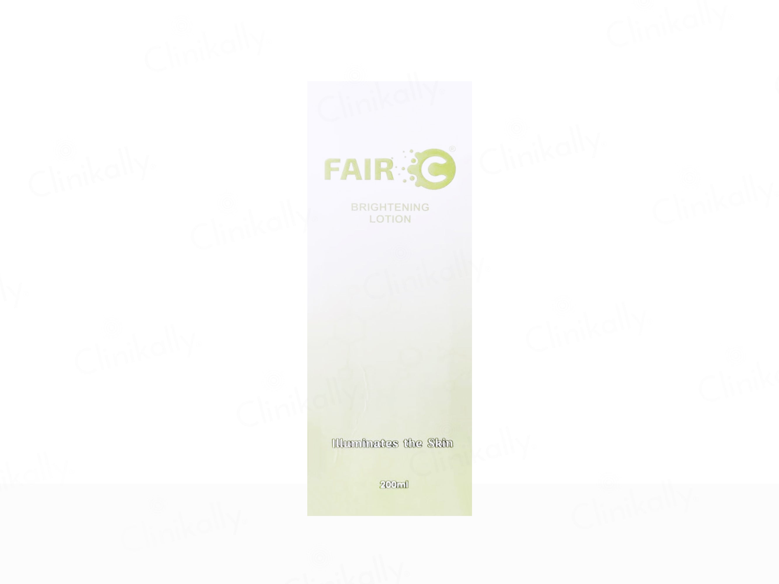 Fair C Brightening Lotion is a skincare product designed to brighten skin, reduce dark spots, and even out complexion with a blend of Vitamin C, Niacinamide, and Licorice Extract. Enriched with Hyaluronic Acid and Aloe Vera, it hydrates deeply, soothes irritation, and promotes a radiant finish. This lightweight lotion, suitable for daily use on all skin types, delivers visible brightening benefits over time.