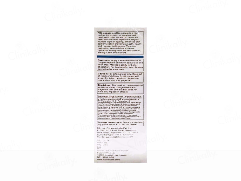 FCL Copper Peptide Serum is used to reduce fine lines, repair the skin barrier, and improve skin hydration and elasticity.