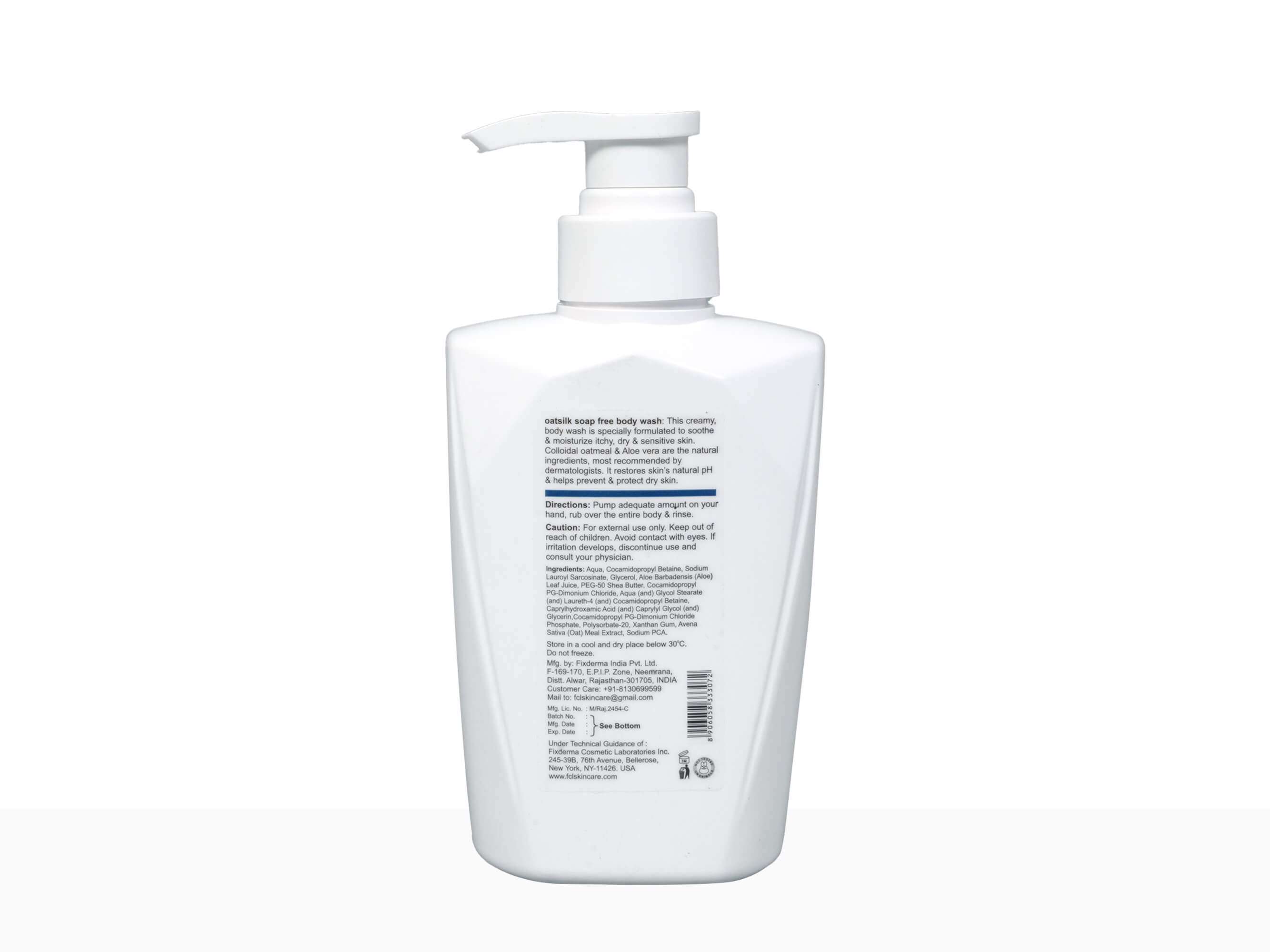FCL Oatsilk Soap Free Body Wash contains Avena sativa extract, which helps reduce skin inflammation and itching.