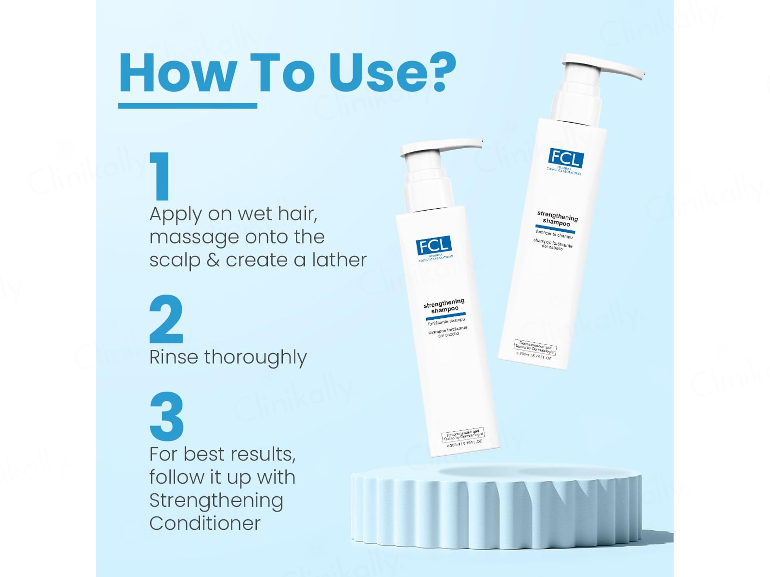• Apply FCL Strengthening Shampoo on wet hair, massage into the scalp to create a lather, and rinse thoroughly; for best results, follow with a strengthening conditioner.